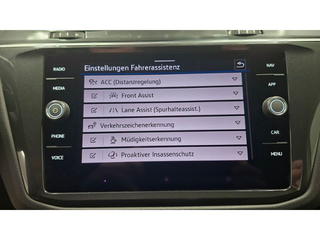 Spurhalteassistent (lane assist); Mit Verkehrszeichenerkennung; Fernlichtregulierung (Light Assist); Müdigkeitserkennung; Autom. Distanzregelung (ACC inkl. Stop&Go-Funktion); Einparkhilfe Plus vorn und hinten; Scheibenwischer mit Regensensor; Insassen-Schutzsystem proaktiv; Umfeldbeobachtungssystem (Front assist) mit City-Notbremsfunktion; Fußgängererkennung; Notrufsystem; Anzeige für Waschwasserstand; Fahrprofilauswahl