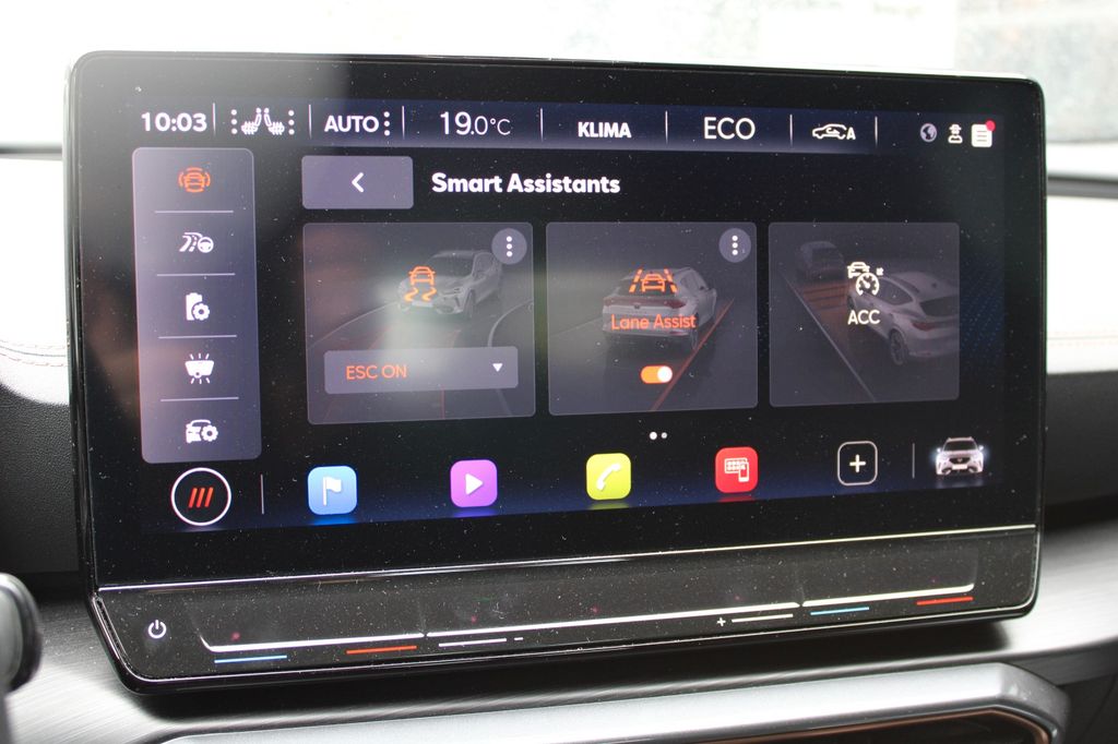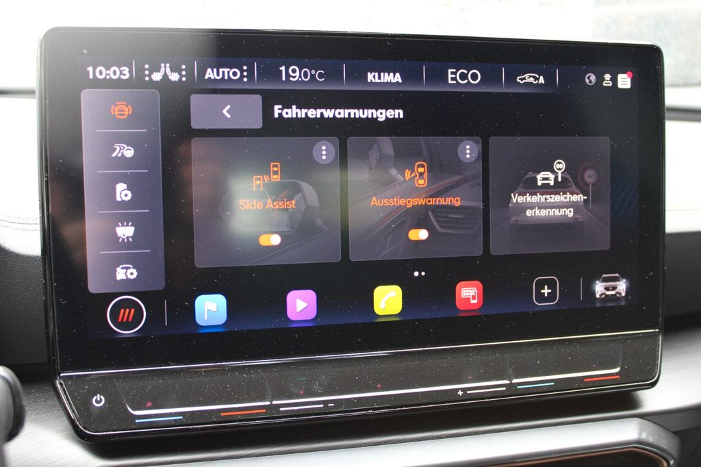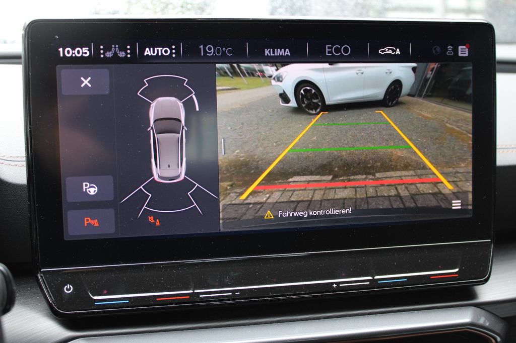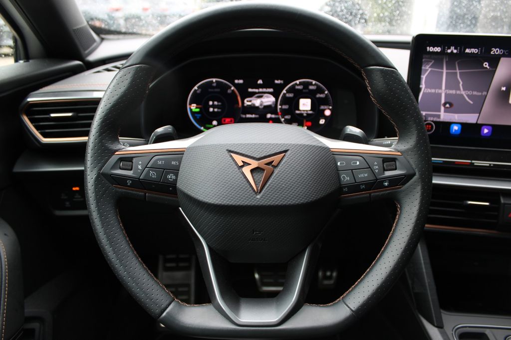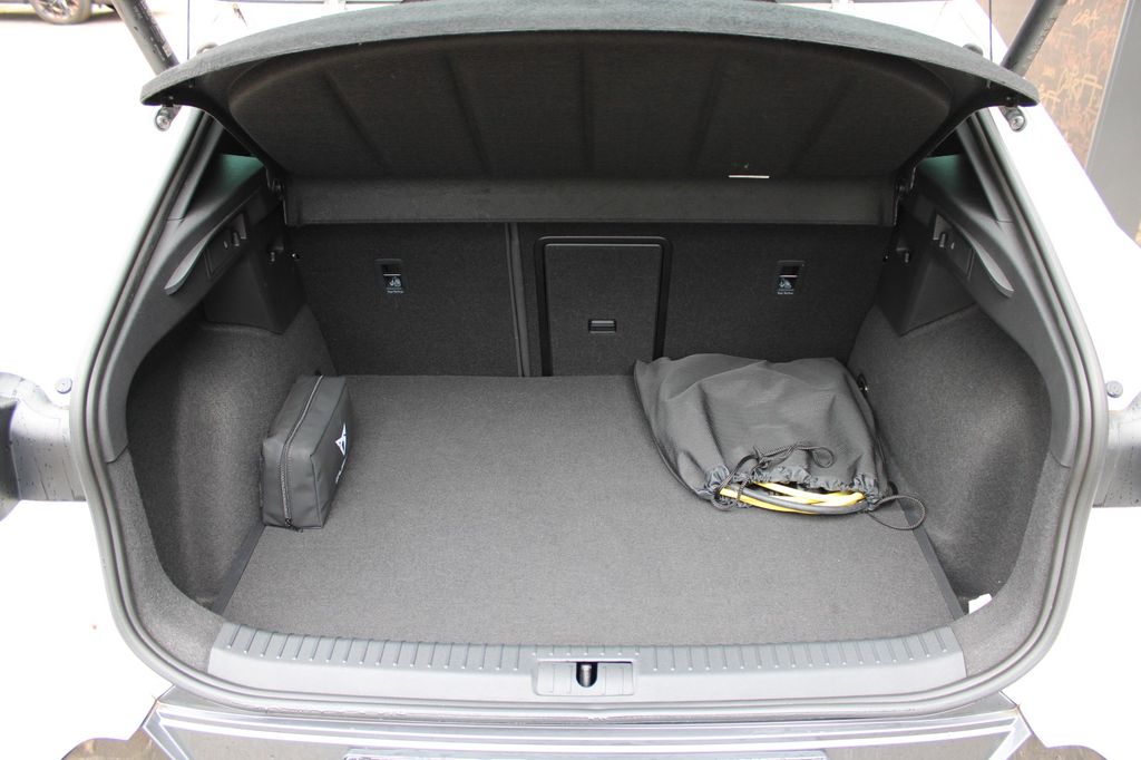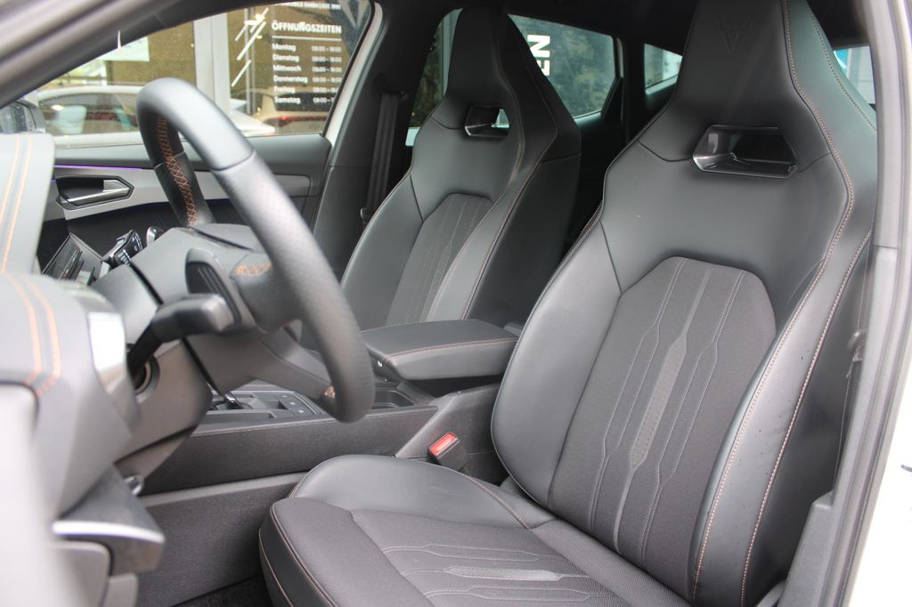 7 Lautsprecher, Airbag Beifahrerseite abschaltbar, Airbag Fahrer-/Beifahrerseite, Akustischer Fußgängerschutz, Außensound (e-sound / AVAS), Ambiente-Beleuchtung Smart Ambient Light, Antriebs-Schlupfregelung (ASR), Audio-Navigationssystem mit Touchscreen Farbbildschirm, Blinkleuchten LED in Außenspiegel integriert, Bluetooth-Schnittstelle mit Freisprecheinrichtung integriert, Dachhimmel schwarz, Dachreling schwarz, hochglänzend, Doppeltonhorn, Einstiegsleisten (Aluminium) vorn, beleuchtet, Elektron. Differentialsperre (XDS), Fahrassistenz-Paket L, Fahrassistenz-Paket: Travel Assist, Fahrassistenz-System: Adaptive Fahrwerksregelung (DCC), Fahrassistenz-System: Fahrprofilauswahl (CUPRA Drive Profile), Fahrassistenz-System: Parklenkassistent mit Einparkhilfe vorn und hinten, Fahrassistenz-System: Pre-Crash-System, Fensterheber elektrisch vorn + hinten mit Komfortschaltung, Fensterzierleisten schwarz hochglänzend, Gepäckraumabdeckung / Rollo, Heckleuchten Voll-LED mit dynamischem Lichtband (Infinite Light), Hybrid 180 kW (Motor 1,4 Ltr. - 110 kW TSI), Induktionsladeschale für Smartphone, Isofix-Aufnahmen für Kindersitz an Rücksitz, Karosserie: 5-türig, Klimaanlage Climatronic 3-Zonen, Kombiinstrument digital (virtual cockpit), Kopf-Airbag-System, Ladekabel mit Schukostecker, Licht- und Sicht-Paket, LM-Felgen, Mittelarmlehne hinten, Mittelkonsole vorn mit Mittelarmlehne, Becherhalter, Ablagebox und Luftausströmer hinten, Notrufsystem, Otto-Partikelfilter (OPF), Parkbremse elektrisch, Radioempfang digital (DAB+), Radstand 2680 mm, Reifen-Reparaturset, Rückfahrkamera, Rücksitzlehne geteilt/klappbar (1/3-2/3), Rücksitzlehnen umklappbar mit Fernentriegelung im Kofferraum, Schadstoffarm nach Abgasnorm Euro 6d, Seitenairbag, Seitenairbag vorn mitte (Central Airbag), Seitenscheiben hinten und Heckscheibe abgedunkelt, Sitz vorn links höhenverstellbar, Sitz vorn rechts höhenverstellbar, Sitzbezug / Polsterung: Stoff, Sonnenblende links mit Spiegel (beleuchtet), Sonnenblende rechts mit Spiegel (beleuchtet), Sport-Schalensitze vorn mit integrierten Kopfstützen, Start/Stop-Anlage, Steckdose (12V-Anschluß) vorn, Steckdose 230V im Gepäckraum, USB-Ladeanschlüsse (2-fach, Typ C) für 2.Sitzreihe, USB-Schnittstelle vorn (2-fach, Typ C), Verzurrösen Koffer-/Laderaum, Warnanlage für Sicherheitsgurt-System, Wärmeschutzverglasung