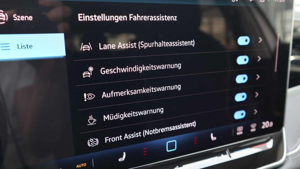 Airbag Fahrer-/Beifahrerseite, Beifahrerairbag abschaltbar, Knieairbag Fahrerseite, Ambiente-Beleuchtung, App-Connect Wireless (Apple CarPlay, Android Auto), Ausstattung Elegance, Außenspiegel asphärisch, links und konvex, rechts, Außenspiegel elektr. verstell-, heiz- und anklappbar, Umfeldleuchte, Abblendautomatik links, Spiegelabsenkung rechts, Außenspiegel mit Umfeldleuchte und Projektionsfunktion, Außenspiegel Wagenfarbe, Bordwerkzeug, Chromleisten an Seitenfenstern, Dachhimmel Stoff Ceramique (hellgrau), Dachreling silber eloxiert, Diebstahl-Warnanlage (Innenraumüberwachung, Back-up-Horn, Abschleppschutz), Digital Cockpit PRO (Instrumentenanzeige digital), Einstiegsleisten vorn und hinten (Edelstahl), Einstiegsleuchten in den Türen vorn und hinten LED, Elektron. Stabilitäts-Programm (ESP) mit Bremskraftverstärker elektro-mechanisch, Fahrassistenz-System: Abbiegebremsfunktion und Ausweichunterstützung, Fahrassistenz-System: Ablenkungs- und Müdigkeitserkennung, Fahrassistenz-System: Autom. Distanzregelung (ACC inkl. Stop&Go-Funktion), Fahrassistenz-System: Berganfahr-Assistent, Fahrassistenz-System: Fußgängererkennung, Fahrassistenz-System: Memoryfunktion für Park Assist, Fahrassistenz-System: Notbremsassistent Front assist mit Fußgänger- und Fahrraderkennung, Fahrassistenz-System: Parklenkassistent (Park Assist Plus) inkl. Einparkhilfe vorn und hinten, Fahrassistenz-System: Spurhalteassistent (Lane Assist) inkl. Stauassistent, Fahrassistenz-System: Spurwechselassistent (Side Assist) mit Auspark-Assistent und Ausstiegswarnung, Fahrassistenz-System: Verkehrszeichenerkennung, Frontscheibe Verbundglas, wärmedämmend, Fußmatten Textil, Fzg. ohne Hybrid, Gepäckraum-Abtrennung (Netztrennwand), Gepäckraumabdeckung mit elektr. Öffnung, Gepäckraumboden höhenverstellbar, Geschwindigkeitsbegrenzer mit vorausschauender Geschw.-Regelung, Heckscheibenwischer, Heckspoiler in Wagenfarbe (Dachspoiler), Infotainment-System mit Touchscreen-Farbdisplay 12,9 Zoll, Innenausstattung: Dekoreinlagen, Innenspiegel mit Abblendautomatik, Insassen-Schutzsystem proaktiv, Isofix-Aufnahmen für Kindersitz an Beifahrersitz und Rücksitze außen (inkl. i-Size-Kindersitze), Karosserie: 5-türig, Klimaanlage Air Care Climatronic 3-Zonen inkl. Fondbedienung und Aktiv-Kombi-Filter, Kofferraumdeckel / Heckklappe elektr. betätigt (Schließen, sensorgesteuert öffnend, Fernentriegelung), Kopfstützen hinten (3-fach), Kraftstofftank: 66 Ltr., Ladekantenschutz (Edelstahl), Lautsprecher (8), LM-Felgen, Matrix-LED-Scheinwerfer (IQ.Light), Mobiltelefon Schnittstelle Comfort mit kabelloser Ladefunktion (15 Watt), Motor 2,0 Ltr. - 110 kW TDI, Multimedia-Schnittstelle 2 x USB (Typ C) vorn und 2 x USB-Ladeanschluß (Typ C) Mittelkonsole hinten (45 W), Navigationsfunktion, Nebelschlussleuchte einseitig und Rückfahrleuchten beidseitig, Notrufsystem, Parkbremse elektrisch mit Auto-Hold-Funktion, Radioempfang digital (DAB+), Reifenkontroll-Anzeige, Rücksitz geteilt / klappbar, Durchladefunktion, Schadstoffarm nach Abgasnorm Euro 6e, Scheibenwaschdüsen vorn automatisch beheizt, Schließ-/Startsystem Keyless Access mit Safesicherung, SCR-System (AdBlue-Technologie), Seitenairbag vorn mit Center-Airbag, Kopf-Airbag-Einheit vorn und hinten, Service-System: Intelligente Fahrzeugvernetzung (Car2X), Sitzbezug / Polsterung: Mikrovlies ArtVelours Eco, Sitze vorn ErgoActive (höhenverstellbar, Oberschenkelauflage verschiebbar), Sitze vorn mit Massageprogrammen, Sitze: Sport-Komfortsitze vorn, Sitzheizung vorn, Sonnenblenden mit Spiegel (beleuchtet), Sonnenschutzrollo an Türscheiben hinten, Start/Stop-Anlage mit Rekuperation, Stoßfänger Elegance, Verbandkasten, Warndreieck und Warnweste(n)