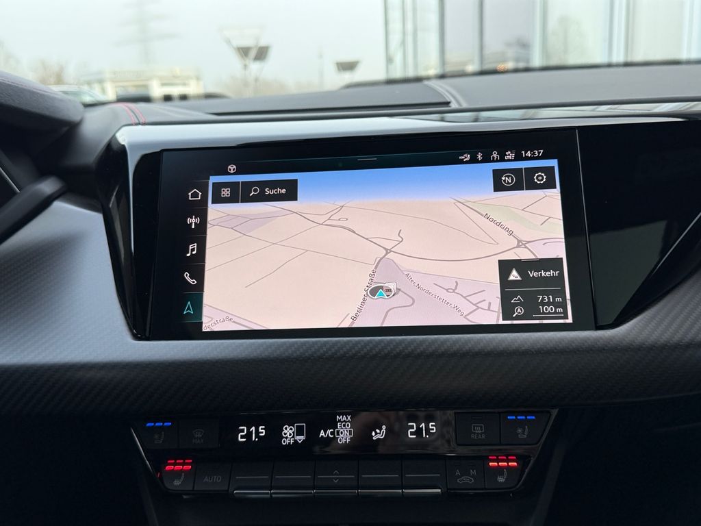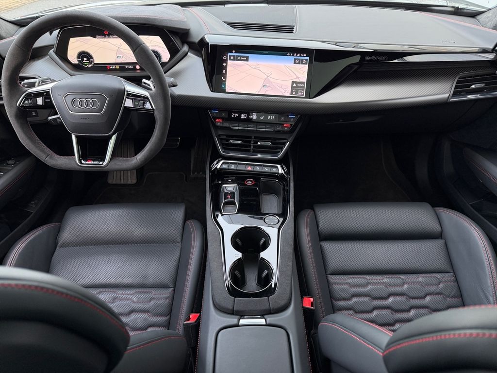 Design-Paket: RS rot; Lenkrad (Sport/Alcantara - 3-Speichen, unten abgeflacht) mit Multifunktion plus und Schaltfunktion; Bordcomputer; elektrische Fensterheber; Kombiinstrument digital (virtual cockpit); Fußmatten Velours; Lenkrad elektrisch verstellbar; Klimaautomatik 3 Zonen; Komfort-Standklimatisierung; Dachhimmel Mikrofaser Dinamica; Sonnenblenden mit Spiegel (beleuchtet); Ambiente-Beleuchtung (Multicolor-LED); Pedale und Fußstütze in Edelstahl; Ionisator zur Luftreinigung (Air-Quality-System); Ladekabel mit Industriestecker (16 A / 400 V); Wandhalterung Ladefunktion (e-tron)