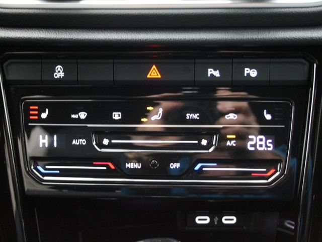 Klimaanlage "Air Care Climatronic" mit Aktiv-Kombifilter und 2-Zonen-Temperaturregelung; Lenkrad (Leder) mit Multifunktion und Schaltfunktion; Innenraumfilter: Aktiv Kombifilter; Bordcomputer; Digital Cockpit Pro, mehrfarbig, verschiedene Info-Profile wählbar; Textilfußmatten vorn und hinten; Dachhimmel schwarz; Gepäckraumboden höheneinstell- und herausnehmbar; Dekoreinlagen "Lava Stone Black" für Instrumententafel, Mittelkonsole und Türverkleidungen vorn; Schalthebelknauf in Leder; Make-up-Spiegel beleuchtet in den Sonnenblenden; Pedale in Edelstahl gebürstet; Chromeinfassung Lichtschalter; Chromeinfassung Fensterheberschalter; Nichtraucherausführung - Ablagefach und 12-V-Steckdose vorn; Chromeinfassung Spiegelverstellung; Einstiegsleisten vorn mit "R-Line"-Schriftzug