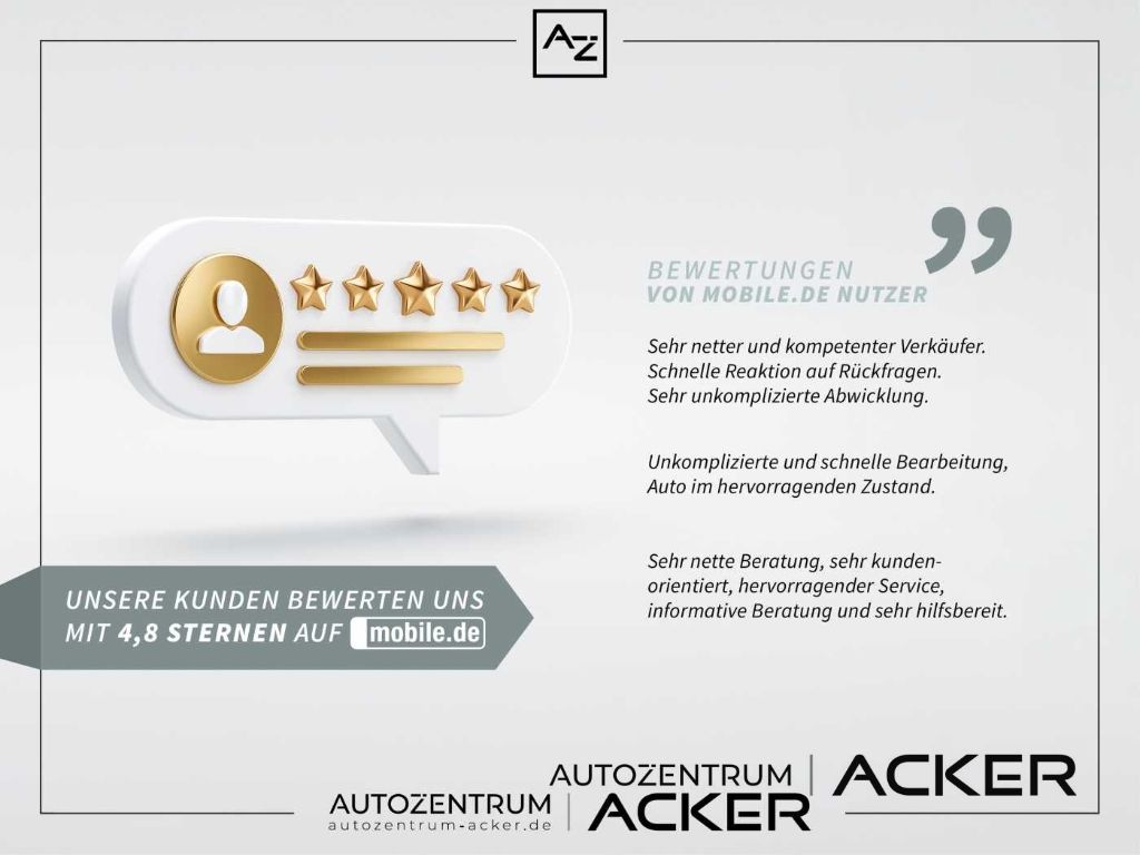 Warum AutoZentrum Acker? - 1.000 Fahrzeuge sofort verfügbar - Riesige Auswahl - Super Preise - mehr als 10.000 zufriedene Verkauf- und Servicekunden pro Jahr - Stellantis-Partner seit 2023 - Drei Standorte - hervorragende PKW und Nutzfahrzeug Kompetenz - Dienstleister - professioneller Support im Service auch nach dem Fahrzeugkauf. Abwicklung - Wir freuen uns auf Sie zur Probefahrt, Beratung oder Fahrzeugabholung - Wir bieten Ihnen die komplette Kaufabwicklung telefonisch oder via E-Mail an - Unverbindliche Terminvereinbarung telefonisch oder via E-Mail Inzahlungnahme - Wir kaufen Ihr Fahrzeug - Inzahlungnahme mit Altkredit-Ablösung Finanzierung - Finanzierung zu Top-Konditionen - Finanzierung auch ohne Anzahlung - Laufzeit und Schlussrate wie gewünscht - Direkte Zusage und Altkredit-Ablösung *Wir bieten Ihnen zusätzlich