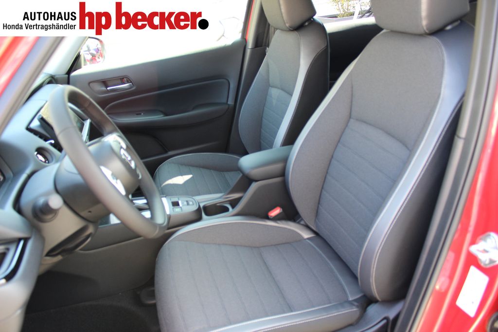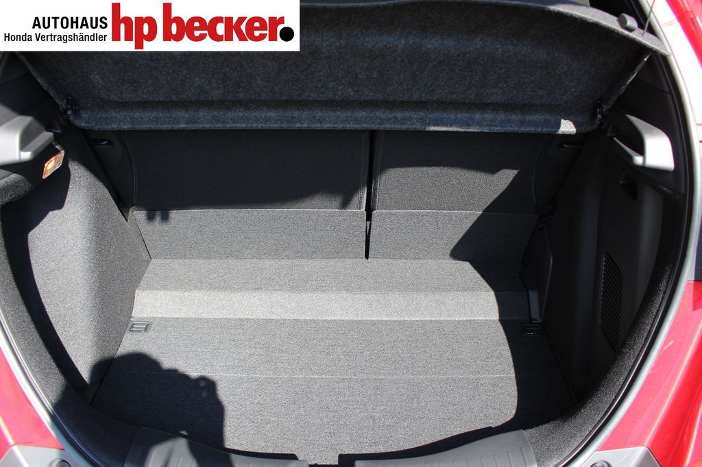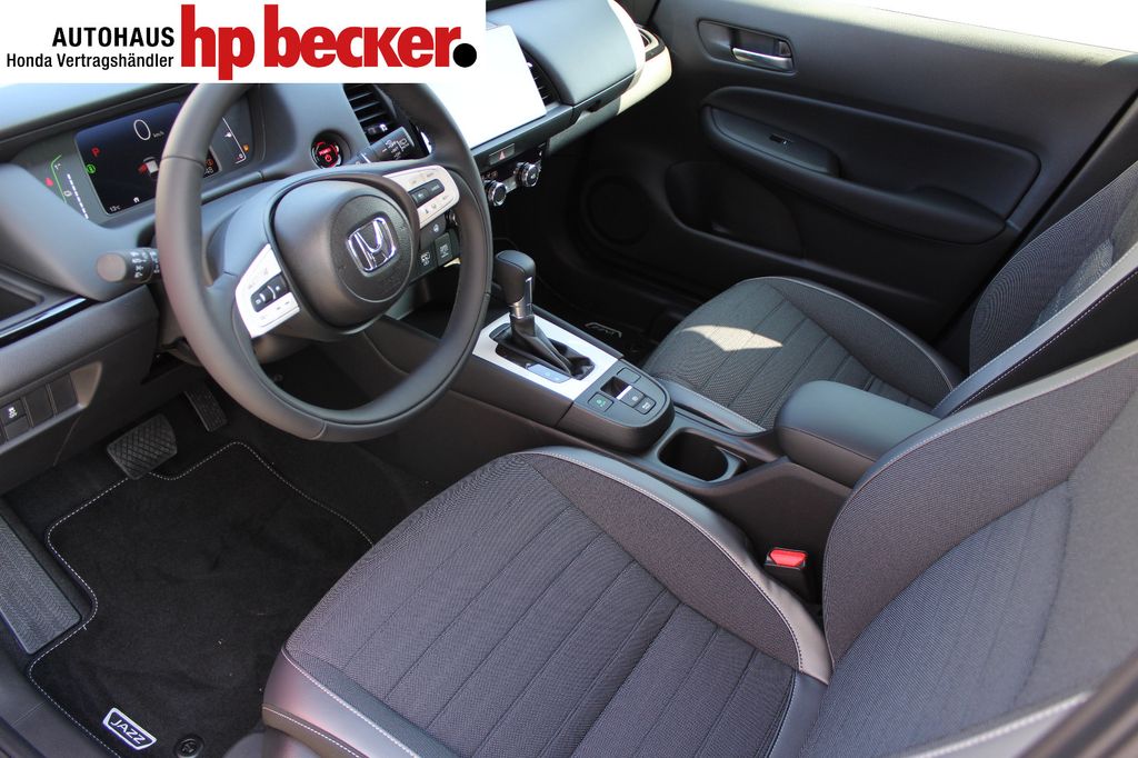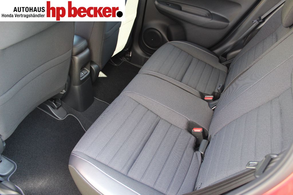 8 Lautsprecher,Lenkrad heizbar, Airbag Beifahrerseite abschaltbar, Airbag Fahrer-/Beifahrerseite, Aktive Kopfstützen vorn, Anhänger-Stabilisierungs-Programm (TSA), Anzeige für Reifendruck im Display, Autom. Begleitfunktion der Beleuchtung (Coming Home, Leaving Home), Automatische Fahrlichtschaltung / Lichtsensor, Außenspiegel elektr. anklappbar, Außenspiegel elektr. verstell- und heizbar, beide, Außenspiegel mit Bordsteinautomatik, rechts, Außenspiegel silber lackiert, Blinkleuchte in Außenspiegel integriert, Bremsassistent, Dachantenne im Haifischflossen-Design, Dachreling, Einparkhilfe vorn und hinten, Elektr. Bremskraftverteilung, Elektromotor 80 kW (Hybridantrieb), Fahrassistenz-System: Berganfahrhilfe, Fahrassistenz-System: Eco Assist (Econ Modus), Fahrassistenz-System: Fernlichtassistent (HSS), Fahrassistenz-System: Intelligente Geschwindigkeitsanpassung (Tempomat) mit Abstandsregelung I-ACC, Fahrassistenz-System: Kollisionswarnsystem mit Bremseingriff und Fußgängererkennung (CMBS), Fahrassistenz-System: Sicherheitssystem mit automatischem Notruf (ERA GLONASS / eCall), Fahrassistenz-System: Spurhalteassistent (LKAS / LDW), Fahrassistenz-System: Spurverlassenswarnung (LDW, Lane Departure Warning), Fahrassistenz-System: Stauassistent (LSF), Fahrassistenz-System: Verkehrszeichenerkennung, Fensterheber elektrisch vorn und hinten, mit Auf-/Ab-Automatik, Freisprecheinrichtung (Bluetooth) mit Sprachsteuerung, Gepäcknetz an Vordersitzlehne links, Gepäcknetz an Vordersitzlehne rechts, Gepäckraumabdeckung / Rollo, Getriebe Automatik stufenlos - ECVT, Getränkehalter vorn, Gurtstraffer, Heckleuchten LED, Hybrid 90 kW (Motor 1,5 Ltr. - 79 kW), Infotainment-System: Honda Connect mit 9" Touchscreen / Garmin Navi / Internetbasierende Dienste / DAB-Tuner, Isofix-Aufnahmen für Kindersitz, Karosserie: 5-türig, Klimaautomatik, Knieairbag Fahrerseite, Kopf-Airbag-System, Lenksäule (Lenkrad) höhenverstellbar, Leseleuchten vorn, LM-Felgen, Motorsound-System (Acoustic Vehicle Alerting System, AVAS), Multi-Info-Display (i-MID), Multifunktion für Lenkrad, Nebelscheinwerfer LED, Otto-Partikelfilter (OPF), Parkbremse elektrisch, Reifen-Reparaturset, Rückfahrkamera, Rücksitz geteilt / klappbar, Rücksitze im Fahrzeugboden versenkbar, Schadstoffarm nach Abgasnorm Euro 6d, Schalt-/Wählhebelgriff Leder, Scheinwerfer LED, Seitenairbag hinten, Seitenairbag vorn, Seitenairbag vorn mitte (Center-Airbag), Sitz vorn links höhenverstellbar, Sitzbezug / Polsterung: Stoff, Sitzheizung vorn, Sonnenblenden mit Make-up-Spiegel, Steckdose (12V-Anschluß) in Armaturentafel, Türgriffe außen Wagenfarbe, USB-Ladeanschluß hinten (2-fach), USB-Ladeanschluß vorn, USB-Schnittstelle, Verglasung hinten abgedunkelt (Privacy Glass)