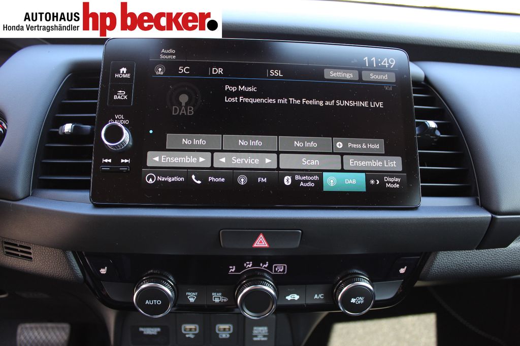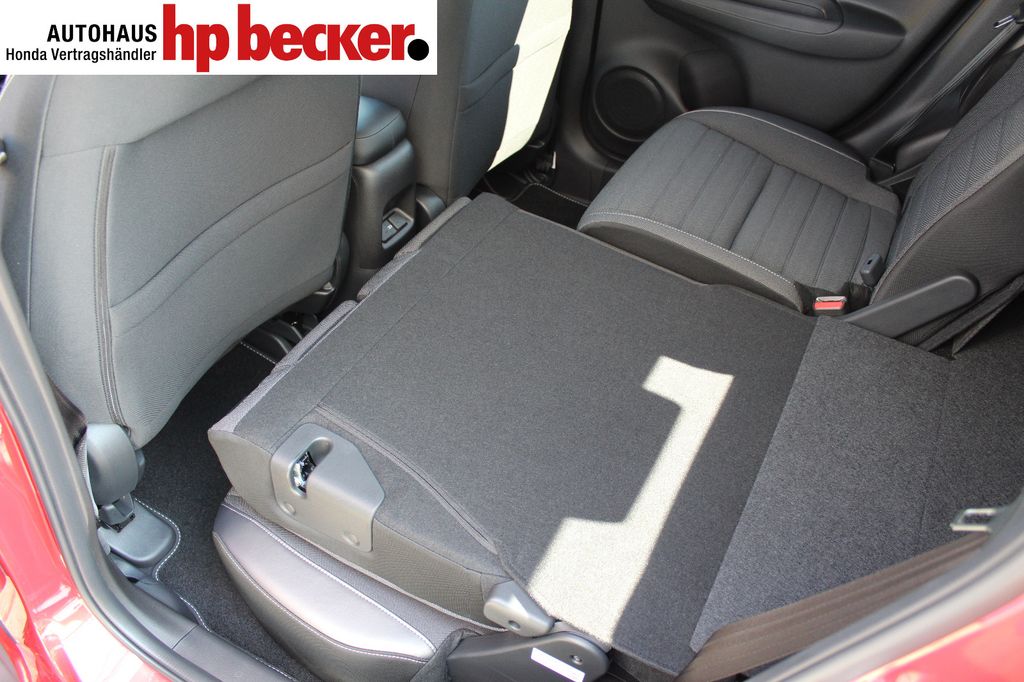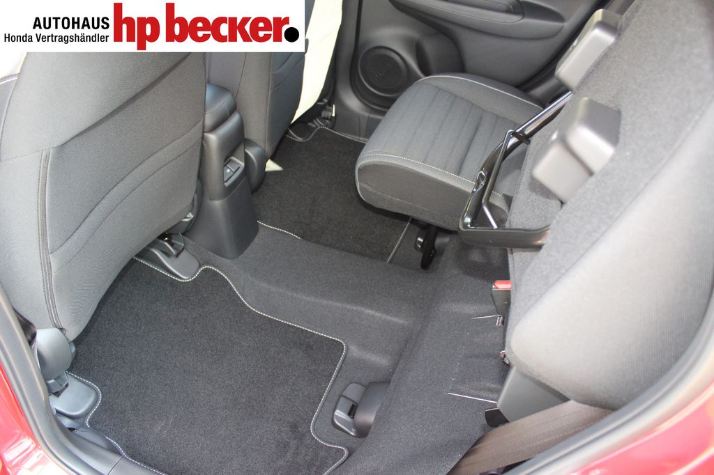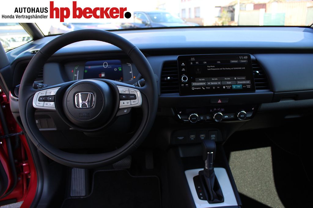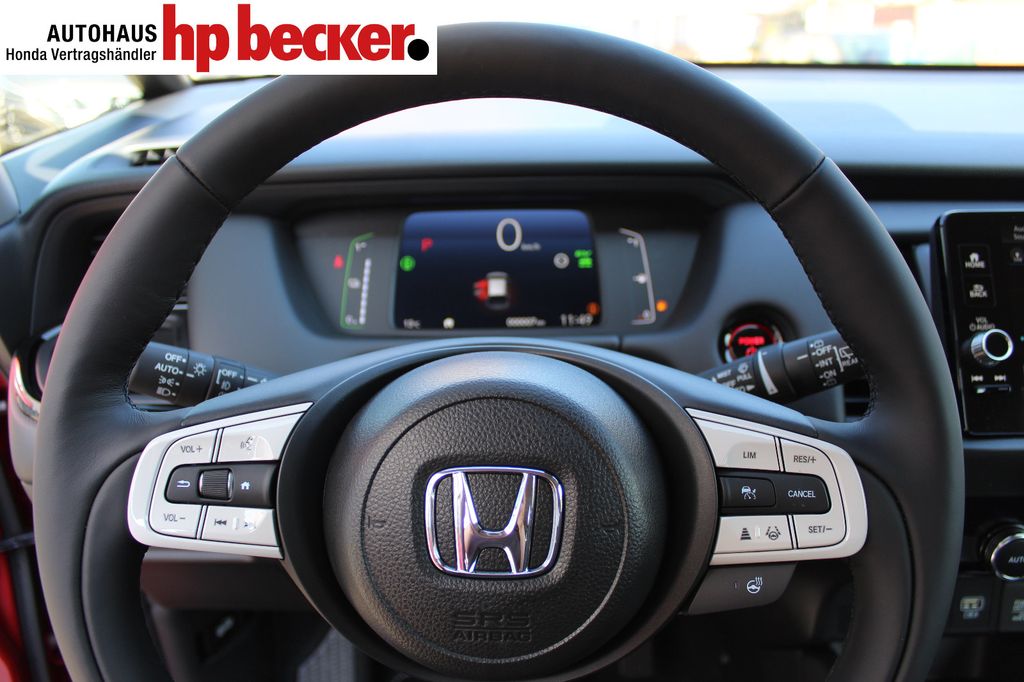8 Lautsprecher,Lenkrad heizbar, Airbag Beifahrerseite abschaltbar, Airbag Fahrer-/Beifahrerseite, Aktive Kopfstützen vorn, Anhänger-Stabilisierungs-Programm (TSA), Anzeige für Reifendruck im Display, Autom. Begleitfunktion der Beleuchtung (Coming Home, Leaving Home), Automatische Fahrlichtschaltung / Lichtsensor, Außenspiegel elektr. anklappbar, Außenspiegel elektr. verstell- und heizbar, beide, Außenspiegel mit Bordsteinautomatik, rechts, Außenspiegel silber lackiert, Blinkleuchte in Außenspiegel integriert, Bremsassistent, Dachantenne im Haifischflossen-Design, Dachreling, Einparkhilfe vorn und hinten, Elektr. Bremskraftverteilung, Elektromotor 80 kW (Hybridantrieb), Fahrassistenz-System: Berganfahrhilfe, Fahrassistenz-System: Eco Assist (Econ Modus), Fahrassistenz-System: Fernlichtassistent (HSS), Fahrassistenz-System: Intelligente Geschwindigkeitsanpassung (Tempomat) mit Abstandsregelung I-ACC, Fahrassistenz-System: Kollisionswarnsystem mit Bremseingriff und Fußgängererkennung (CMBS), Fahrassistenz-System: Sicherheitssystem mit automatischem Notruf (ERA GLONASS / eCall), Fahrassistenz-System: Spurhalteassistent (LKAS / LDW), Fahrassistenz-System: Spurverlassenswarnung (LDW, Lane Departure Warning), Fahrassistenz-System: Stauassistent (LSF), Fahrassistenz-System: Verkehrszeichenerkennung, Fensterheber elektrisch vorn und hinten, mit Auf-/Ab-Automatik, Freisprecheinrichtung (Bluetooth) mit Sprachsteuerung, Gepäcknetz an Vordersitzlehne links, Gepäcknetz an Vordersitzlehne rechts, Gepäckraumabdeckung / Rollo, Getriebe Automatik stufenlos - ECVT, Getränkehalter vorn, Gurtstraffer, Heckleuchten LED, Hybrid 90 kW (Motor 1,5 Ltr. - 79 kW), Infotainment-System: Honda Connect mit 9" Touchscreen / Garmin Navi / Internetbasierende Dienste / DAB-Tuner, Isofix-Aufnahmen für Kindersitz, Karosserie: 5-türig, Klimaautomatik, Knieairbag Fahrerseite, Kopf-Airbag-System, Lenksäule (Lenkrad) höhenverstellbar, Leseleuchten vorn, LM-Felgen, Motorsound-System (Acoustic Vehicle Alerting System, AVAS), Multi-Info-Display (i-MID), Multifunktion für Lenkrad, Nebelscheinwerfer LED, Otto-Partikelfilter (OPF), Parkbremse elektrisch, Reifen-Reparaturset, Rückfahrkamera, Rücksitz geteilt / klappbar, Rücksitze im Fahrzeugboden versenkbar, Schadstoffarm nach Abgasnorm Euro 6d, Schalt-/Wählhebelgriff Leder, Scheinwerfer LED, Seitenairbag hinten, Seitenairbag vorn, Seitenairbag vorn mitte (Center-Airbag), Sitz vorn links höhenverstellbar, Sitzbezug / Polsterung: Stoff, Sitzheizung vorn, Sonnenblenden mit Make-up-Spiegel, Steckdose (12V-Anschluß) in Armaturentafel, Türgriffe außen Wagenfarbe, USB-Ladeanschluß hinten (2-fach), USB-Ladeanschluß vorn, USB-Schnittstelle, Verglasung hinten abgedunkelt (Privacy Glass)