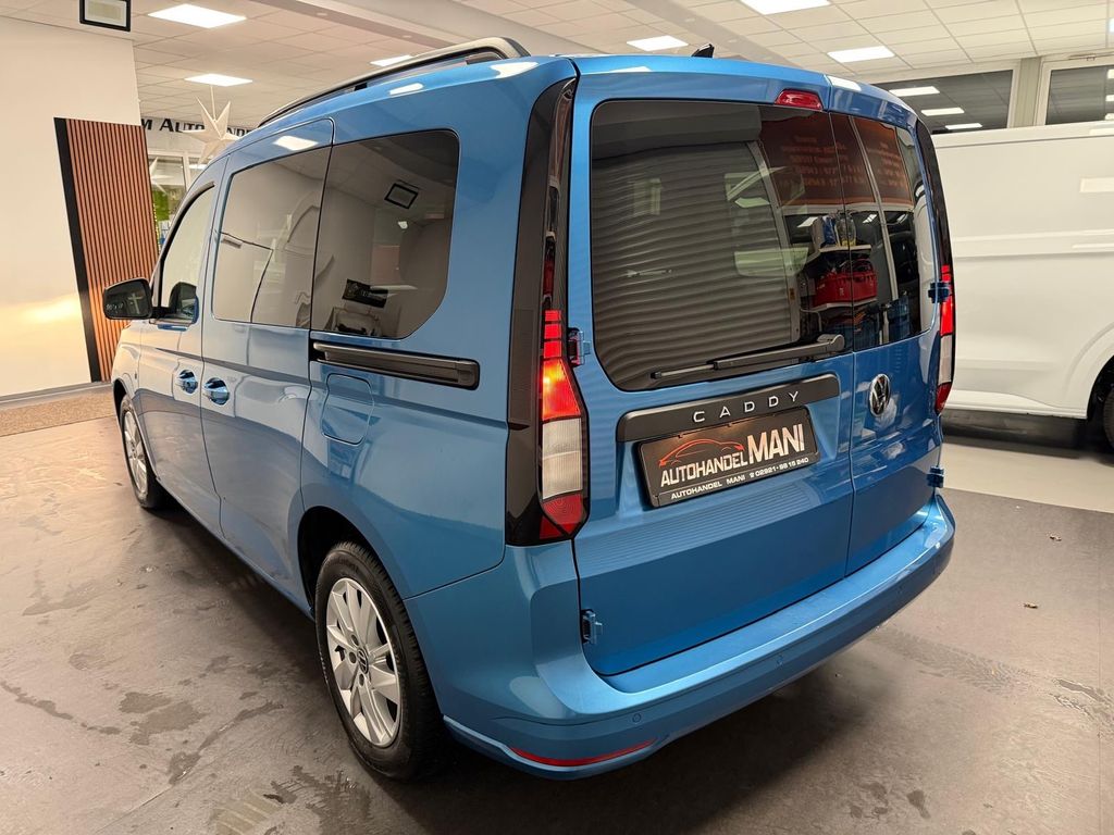 Sonderausstattung:4G3 - Ausweichunterstützung und AbbiegeassistentP3P - Automatische Distanzregelung ACC (bei DSG mit "follow to Stop") inklusive Geschwindigkeitsbegrenzer8T8 - Automatische Distanzregelung ACC (bei DSG mit "follow to stop") inklusive Geschwindigkeitsbegrenzer6FK - Außenspiegelgehäuse in schwarz lackiert, Türgriffe in Wagenfarbe und Schiebetürschiene in Schwarz0VC - Bordliteratur auf DeutschZAW - DesignpaketWF2 - Deutschland7X2 - Einparkhilfe im Front- und HeckbereichJ69 - Ganzjähresreifen 205/60 R16 96H XL Rollwiderstandsoptimiert3CB - Gepäck-Auffangnetz im Fahrgast-/Laderaum (2 Aufnahmepunkte beim Caddy bzw. 3 Aufnahmepunkte beim Caddy Maxi)3RE - Heckflügeltüren mit Fensterausschnitten, asymmetrisch geteilt9AK - Klimaanlage, 2-Zonen "Air Care Climatronic"X10 - Landesverkaufsprogramm Europa MitteQK1 - Multifunktionskamera8J3 - Notbremsassistent "Front Assist" mit Fußgänger- und Radfahrererkennung9T1 - Scheibenwaschdüsen vorn, beheizbarQC1 - Seitenscheiben vorn in Wärmeschutzglas, Seitenscheiben hinten und Heckscheibe abgedunkelt, zu 74 % lichtabsorbierend4A3 - Sitzheizung für Sitze im Fahrerhaus, links und rechts, getrennt regelbar0TD - Textilfußmatten vorn und hinten1G8 - Reifenmobilitätsset: 12-Volt-Kompressor und ReifendichtmittelB01 - Typprüfland Deutschland1EX - Typschild für M1-Pkw mit EG-Typgenehmigung, mit Gewichtsangabe, mit COC-Papieren1T9 - Verbandmaterial, Warndreieck und 1 WarnwesteR22 - Vorbereitet für "We Connect" und "We Connect Plus"8X7 - Waschwasserstand-Anzeige mit vergrößertem WaschwasserbehälterEL2 - Wir verbinden ohne LaufzeitbeschränkungZW6 - Winterpaket4I7 - Zentralverriegelung mit schlüssellosem Startsystem "Keyless Start" ohne Safe-Sicherung