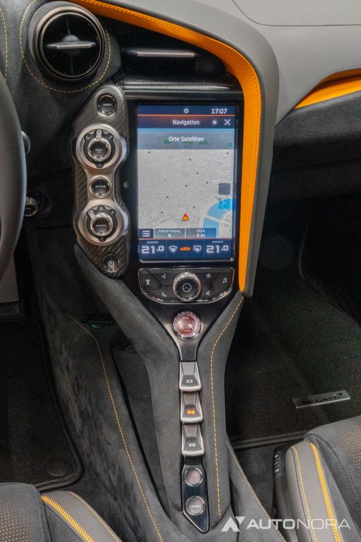 Lift-System, Türen mit Gorilla Glass, Soft-Close für Türen, Carbon Exterieurpaket 1, Außenspiegel in Carbon, Lufteinlass Haube vorne in Carbon, Lufteinlass hinten in Carbon, Sport-Auspuffanlage, Sitze elektrisch verstellbar und beheizbar, Interieur Komponenten in Carbon. Ambientebeleuchtung, Einparksensoren vorne und hinten, 360 Grad Surround View Kameras, 20“ Leichtmetallräder im 5-Doppelspeichen Sport Design in stealth (dunkelgrau), Keramikbremsanlage mit Bremssätteln in McLaren Orange, Reifendruckkontrolle, Vehicle Tracking System, Alarmanlage, Fußmatten, Carcover, Batterie-Erhaltungsgerät