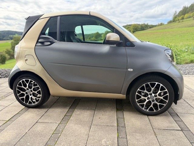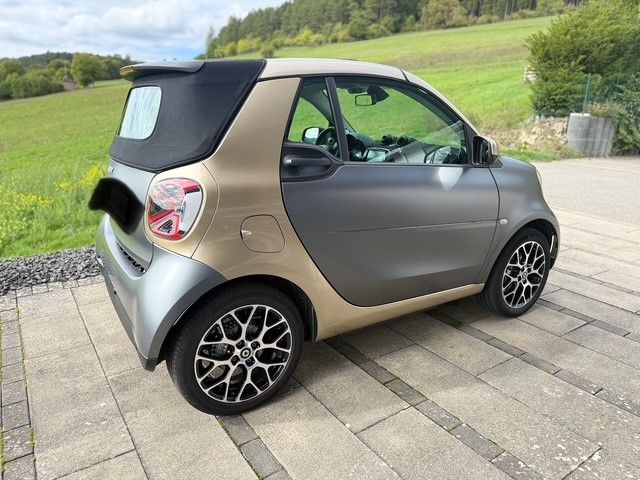 Wir verkaufen hier unseren wunderschönen volllausgestatteten Smart Cabrio Prime Ausstattung aus 11-2023 zum Festpreis!Er verfügt über eine Vollausstattung mit Ledersitzen Ziernähte in Grau, Rückfahrkamera, Exclusive Paket, Einparkhilfe hinten, JBL Soundsystem, Ambiente Beleuchtung, Leichtmetallfelgen, Michelin Bereifung, Sitzheizung, Regen und Lichtsensor, Smartphone Integration, LED Tag und Nachtfahrlicht, Aktiver Bremsassistent, Tempomat, elektrische Fenster und Cabrioverdeck