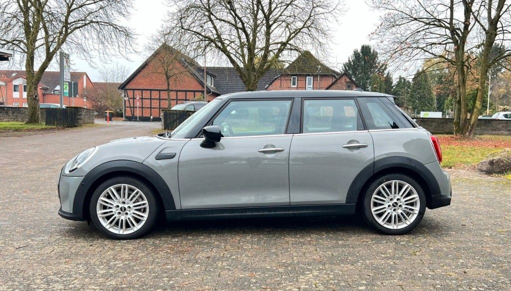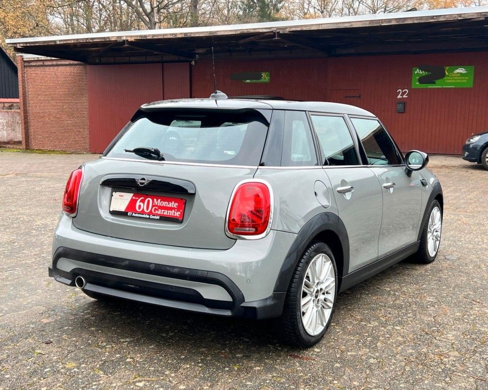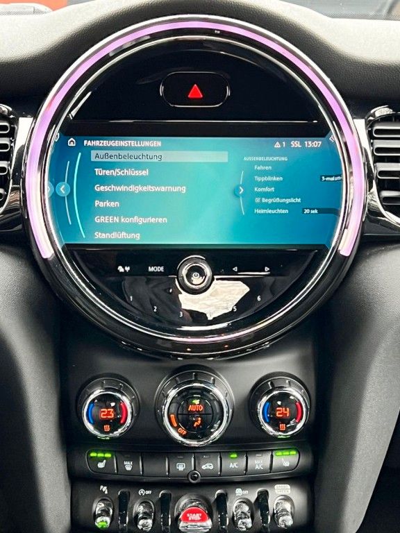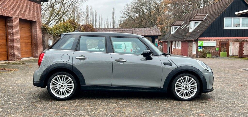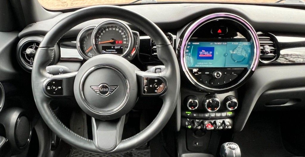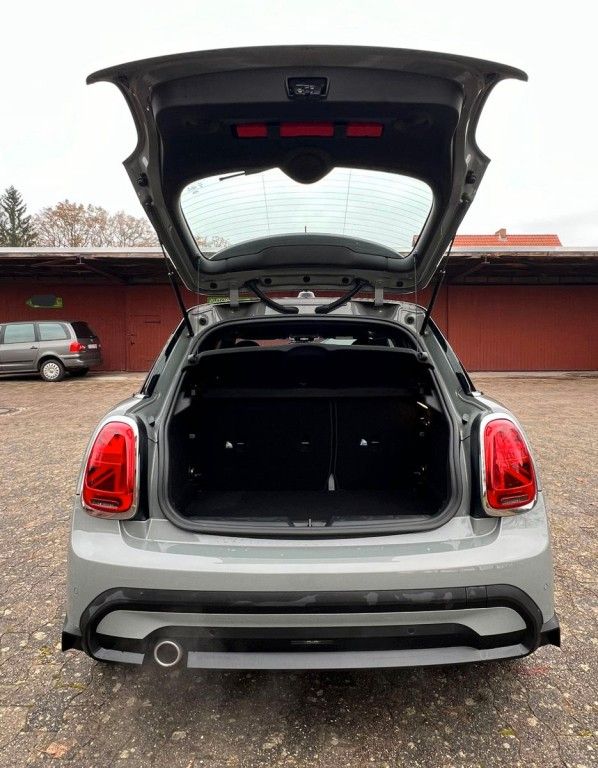 3. Bremsleuchte, Airbag Fahrer-/Beifahrerseite, Audiosystem MINI Visual Boost (inkl. LC-Display), Auspuffanlage (1-Rohr-Anlage) mit Blende, Autom. Begleitfunktion der Beleuchtung (Follow me home), Außenspiegel elektr. verstellbar, Außentemperaturanzeige, Blinkleuchten Weiß, Bordcomputer, Bremsassistent, Bremsenergierückgewinnung, Classic Trim, DAB-Tuner (Radioempfang digital), Dach + Außenspiegel Weiß lackiert, Dachhimmel Satellite Grey, Dachspoiler, Dekor-/Zierstreifen auf Motorhaube, Dynamische Bremsleuchte, Elektron. Bremskraftverteiler, Erste Hilfe-Kasten / Verbandkasten, Exterieurumfänge Sidescuttles mit integrierten Blinkern, Fahrassistenz-System: Performance Control, Fensterheber elektrisch vorn + hinten, Freisprecheinrichtung Bluetooth mit USB-/Audio-Schnittstelle, Fußmatten Velours, Getränkehalter vorn und hinten, Griffleiste Heckklappe, Schwarz hochglänzend, Heckleuchten Union Jack, Heckscheibenwischer, Innenausstattung: Interieur-Oberfläche Hazy Grey, Innenausstattung: Türverkleidungen und Seitenverkleidung Carbon Black, Isofix-Aufnahmen für Kindersitz, Karosserie: 5-türig, Kopf-Airbag-System hinten, Kopf-Airbag-System vorn, Kurvenbremskontrolle (Corner-Brake-Control, CBC), Lenkrad (Sport/Leder), Lenksäule (Lenkrad) mechan. verstellbar, Leuchtweitenregelung, Licht-Paket, LM-Felgen, Metallic-Lackierung, Modellpflege (2), Motor 1,5 Ltr. - 100 kW 12V, Multifunktion für Lenkrad, Otto-Partikelfilter (OPF), Personalisierungssystem (Personal Profile), Rücksitzlehne geteilt/klappbar, Schadstoffarm nach Abgasnorm Euro 6d, Schalt-/Wählhebelgriff Leder, Schaltpunktanzeige, Scheibenwaschdüsen und Außenspiegel beheizt, Schweller, Stoßfängerecken und Radlaufverbreiterung schwarz, Seitenairbag vorn, Service-System: ConnectedDrive Services, Service-System: Intelligenter Notruf inkl. TeleServices, Service-System: Remote Services, Sitz vorn links mechanisch höhenverstellbar, Sitz vorn rechts höhenverstellbar, Sitzausstattung: 5-Sitzer, Sitzbezug / Polsterung: Stoff/Kunstleder-Kombination Black Pearl, Sitze vorn mechanisch verstellbar, Sonnenblenden mit Spiegel, Start-Stop-Knopf, Start/Stop-Anlage (Funktion), Türgriffe innen verchromt, Warndreieck, Wärmeschutzverglasung getönt, Zentralinstrument mit LED-Ring