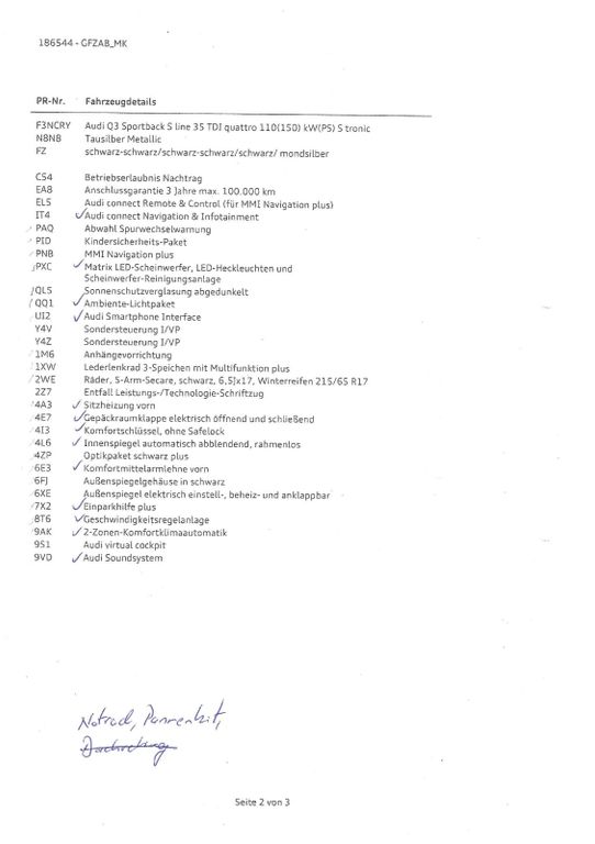 Das Fahrzeug ist mit seinen 7.300 km absolut in einem neuwertigem Top-Zustand und ohne jegliche Beschädigungen. Alle Ausstattungen siehe Foto anbei.Mit dem quattro-Antrieb ist jederzeit eine absolut sichere Traktion bei allen Witterungsbedingungen gegeben - insbesondere im Winter der ideale Antrieb.