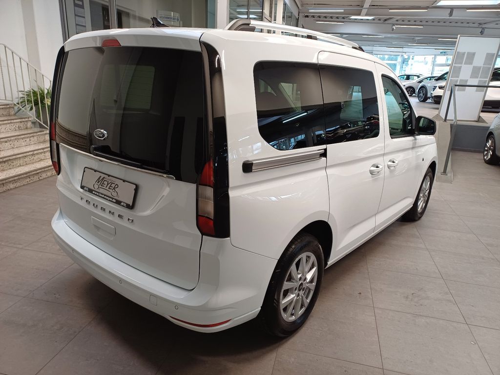 Ablage im Dachhimmel Fahrerhaus, Antriebs-Schlupfregelung (ASR), Außenspiegel elektr. anklappbar, Außenspiegel elektr. verstell- und heizbar, Außenspiegel schwarz, Dachreling silber, Fahrassistenz-System: Berganfahr-Assistent (Hill-Holder), Fahrassistenz-System: Sicherheitssystem SYNC mit automatischem Notruf, FordPass Connect inkl. eCall, Fußmatten vorn, Heckflügeltüren mit Verglasung, Heckklappe verglast, Innenraumfilter: Staub- und Pollenfilter, Innenspiegel mit Abblendautomatik, Intelligent Protection System (IPS), Isofix-Aufnahmen für Kindersitz, Karosserie: 5-türig, Kopfstützen hinten verstellbar, Lenksäule (Lenkrad) höhen-/längsverstellbar, LM-Felgen, Mittelkonsole Premium, Motor 1,5 Ltr. - 84 kW EcoBoost KAT, Nebelscheinwerfer mit statischem Abbiegelicht, Otto-Partikelfilter (OPF), Radstand 2755 mm, Reifen-Reparaturkit, Reifendruck-Kontrollsystem, Rücksitzlehne geteilt/klappbar (60:40), Schadstoffarm nach Abgasnorm Euro 6d, Schalt-/Wählhebelgriff Leder, Scheinwerfer-Assistent mit Tag-/Nachtsensor, Schiebetüren beidseitig, Schiebetüren beidseitig mit Verglasung, Sitz-Paket 18, Sonnenblende links mit Spiegel, Sonnenblende rechts mit Spiegel, Start/Stop-Anlage, Türgriffe außen Wagenfarbe, Verglasung getönt, Zweiter Schlüssel mit Fernbedienung, Irrtümer vorbehalten
