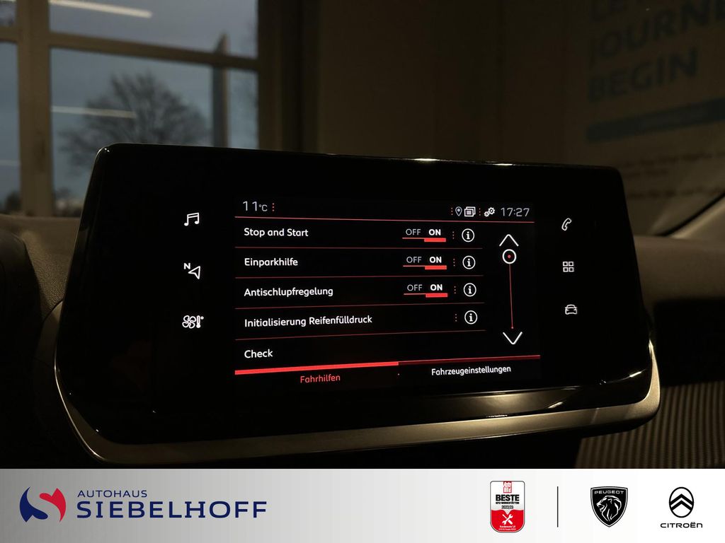 teilbare Rücksitze, Reifendruckkontrolle, Berganfahrhilfe, Notbremsassistent, Touchscreen, USB-Anschluss, Active Safety Brake, Frontkollisionswarner, Verkehrsschildererkennung, Spurhalteassistent mit Lenkeingriff, Fernlichtassistent, Müdigkeitswarner, Mirror Screen (AppleCarPlay / MirroLink), Connect BOX Assistance und SOS, Spracherkennung, Rückfahrkamera mit 180° Umgebungsansicht, Airbag Beifahrerseite abschaltbar, Autom. Begleitfunktion der Beleuchtung (Coming Home, Leaving Home), Außenspiegel elektr. verstell- und heizbar, beide, Außenspiegel mit Abdeckkappen schwarz, Blinkleuchte in Außenspiegel integriert, Elektr. Bremskraftverteilung, Elektrik-Paket, Fahrassistenz-System: Auffahrwarnsystem mit Bremsfunktion, Fahrmodusschalter, Fensterheber elektrisch vorn links, sequentiell, Frontscheibe geräuschdämmend, Fußraumleuchte vorn LED, Getriebe Automatik - (8-Stufen), Getränkehalter vorn, Heckleuchten LED, Heckscheibe heizbar, Heckschürze, schwarz glänzend, Heckspoiler, Heckspoiler schwarz glänzend, Infotainment-System i-Connect, Innenraumfilter: Staub- und Pollenfilter, Karosserie: 5-türig, Kartentasche an Vordersitze, Kindersicherung elektrisch, Kombiinstrument mit Matrix-Display, Komfort-Paket, Kopf-Airbag-System hinten, Kühlergrill verchromt, Lenkrad mit Multifunktion, Lenkrad mit Schaltwippen/-tasten, LM-Felgen, Mittelarmlehne vorn, Mobile Online Dienste Mirror Screen, Motor 1,2 Ltr. - 74 kW PureTech, Multifunktionsanzeige mit Farbdisplay (DGT10CHD), Otto-Partikelfilter (GPF), Parkbremse elektrisch, Pyrotechnischer Gurtstraffer, Radioempfang digital (DAB+), Reifen-Reparaturkit, Rücksitzbank klappbar 1/3-2/3, Schadstoffarm nach Abgasnorm Euro 6d, Scheinwerfer Eco-LED, Seitenscheiben hinten und Heckscheibe dunkel getönt, Sitz vorn links höhenverstellbar, Steckdose (12V-Anschluß) in Mittelkonsole, Türgriffe außen Wagenfarbe, Verzurrösen Laderaum, Warnanlage für SicherheitsgurteSonderausstattung: