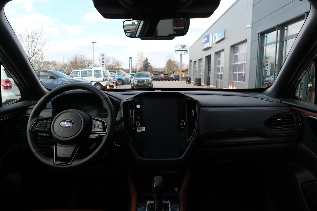 Innenausstattung (Auszug): 360° -Panoramakamera Audio-/Infotainmentsystem Harman/Kardon 11,6" (29,5 cm) Display mit DAB+, 2 USB- Anschlüssen (1x USB-A, 1x USB-C), Apple CarPlay-Wireless- und Android Autoᵀᴹ- Wireless-Technologie und 11 Lautsprechern (inklusive Subwoofer) Beifahrersitz, elektrisch verstellbar (8-fach, inklusive Höhenverstellung) Driver Monitoring System (Fahrer- Erkennungssystem) mit Fahrerprofilen, Aufmerksamkeits- und Müdigkeitswarner Fahrersitz, elektrisch verstellbar (10-fach, inklusive Höhenverstellung), mit Memory- Funktion Induktions-Ladeschale mit QI-Standard für Smartphones Lenkradheizung Navigationssystem mit Multi-Touchscreen- Monitor und Subaru MapCare (Karten- Updatefunktion) Sitzheizung, hinten Sitzheizung, vorne