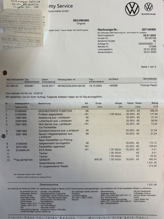 3-Punkt-Sicherheitsgurt hinten mitte, Ablagetasche an Vordersitzlehnen, Airbag Beifahrerseite abschaltbar, Airbag Fahrer-/Beifahrerseite, Antriebs-Schlupfregelung (ASR), Anzeige für Waschwasserstand, Ausstattung Comfortline, Ausstattungs-Paket: Licht + Sicht, Außenspiegel asphärisch, links, Außenspiegel elektr. verstell- und heizbar, Außenspiegel lackiert, Außentemperaturanzeige, Blinkleuchte in Außenspiegel integriert, Bremsassistent, Chrom-Paket (1), Chromleisten an Seitenfenstern, Dachhimmel, weiß (St. Tropez), Doppeltonhorn, Einparkhilfe vorn und hinten, Einstiegsleuchten in den Türen vorn LED, Elektron. Differentialsperre (EDS), Fahrassistenz-System: Anhänger-Stabilisierungs-Programm, Fahrassistenz-System: Berganfahr-Assistent, Fahrassistenz-System: Multikollisionsbremse (Multi Collision Brake), Fahrassistenz-System: Müdigkeitserkennung, Fahrassistenz-System: Umfeldbeobachtungssystem (Front assist) mit City-Notbremsfunktion, Fensterheber elektrisch vorn und hinten, Fernentriegelung Heckklappe, Fußmatten Textil, Gepäckraum-Abtrennung (Netztrennwand), Gepäckraumabdeckung / Rollo, Gepäckraumbeleuchtung, Handschuhfach mit Kühlfunktion, Heckleuchten LED, Heckscheibenwischer, Innenausstattung: Dekoreinlagen Diamond Silver, Innenraumfilter: Staub- und Pollenfilter mit Aktivkohlefilter, Isofix-Aufnahmen für Kindersitz an Rücksitz, Karosserie: 4-türig, Kennzeichenbeleuchtung LED, Keyless-Start, Kindersicherung im Fahrgastraum, Kopf-Airbag-System vorn und hinten inkl. Seitenairbag vorn, Kopfstützen hinten (3-fach), Lendenwirbelstütze und Einstellung Lehnenneigung vorn, links elektr. verstellbar, Lendenwirbelstützen vorn, Lenkrad (Leder) mit Multifunktion und Schaltfunktion, Lenksäule (Lenkrad) mechan. verstellbar, Höhen-/Längsverstellung, LM-Felgen, Mittelarmlehne hinten, Motor 2,0 Ltr. - 140 kW TDI, Multimediabuchse AUX-IN, Nebelschlussleuchte, Nichtraucher-Paket, Parkbremse elektrisch, Reifenkontroll-Anzeige, Rücksitzlehne geteilt mit Mittelarmlehne, Rücksitzlehnen mit Fernentriegelung umklappbar, Schadstoffarm nach Abgasnorm Euro 6, Schalt-/Wählhebelgriff Leder, Sicherheitsgurte vorn mit Gurtstraffer, höhenverstellbar, Sitzbezug / Polsterung: Stoff, Sitze vorn höhenverstellbar, Sitze: Komfortsitze vorn, Start/Stop-Anlage, Steckdose 12V im Koffer-/Laderaum, Stoßfänger Wagenfarbe, Türgriffe außen Wagenfarbe, Türschutzleisten unten in Wagenfarbe, Verbandkasten und Warndreieck, Warnanlage für Sicherheitsgurte vorn