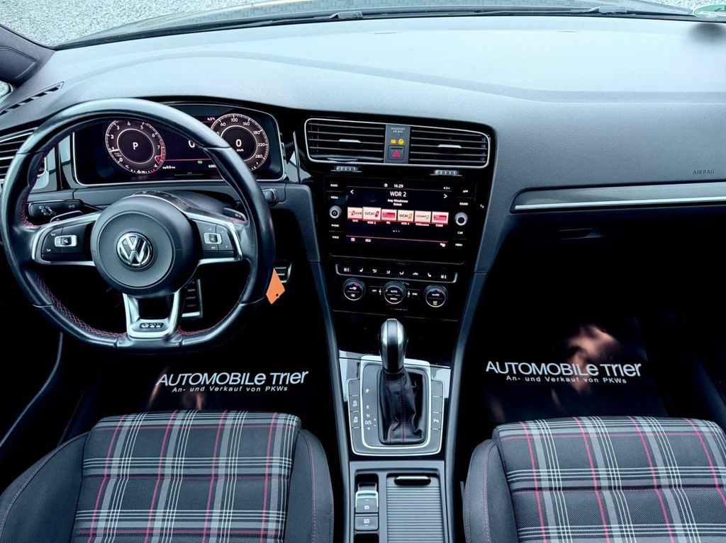 3-Punkt-Sicherheitsgurt hinten mitte, Abbiegelicht, Abgasanlage Performance, Active Info-Display (Instrumentenanzeige digital), Airbag Beifahrerseite abschaltbar, Airbag Fahrer-/Beifahrerseite, Ambiente-Beleuchtung, Antriebs-Schlupfregelung (ASR), Audiosystem Composition Media (Touchscreen, Radio/CD-Player, MP3, Bluetooth), Ausstattung GTI, Auto-Hold-Funktion, Automatische Fahrlichtschaltung (ALS) mit Leaving Home / Coming-Home-Lichtfunktion, Außenspiegel asphärisch, links, Außenspiegel elektr. verstell- und heizbar, Außenspiegel konvex, rechts, Außenspiegel lackiert, Außenspiegel mit autom. Absenkfunktion, rechts, Blinkleuchte in Außenspiegel integriert, Bremsassistent, Bremssättel Rot lackiert, Chrom-Paket 2, Dachhimmel Stoff, schwarz, Dachspoiler, Differentialsperre (Vorderachse), Doppeltonhorn, Durchladeeinrichtung (Mittelarmlehne hinten), Einparkhilfe vorn und hinten, Einstiegsleisten vorn beleuchtet, Elektron. Differentialsperre (EDS), Elektron. Differentialsperre (XDS), Fahrassistenz-System: Anhänger-Stabilisierungs-Programm, Fahrassistenz-System: Müdigkeitserkennung, Fahrassistenz-System: Umfeldbeobachtungssystem (Front assist) mit City-Notbremsfunktion, Frontscheibe Verbundglas getönt, Funkschlüssel (2) klappbar, Fußmatten Textil, Handschuhfach mit Kühlfunktion, Heckleuchten LED, dunkelrot, Blinkleuchten dynamisch, Heckscheibenwischer, Innenausstattung: Dekoreinlagen Honeycomb Black, Innenspiegel mit Abblendautomatik, Isofix-Aufnahmen für Kindersitz an Rücksitz, Karosserie: 5-türig, Klimaanlage Climatronic 2-Zonen, Knieairbag Fahrerseite, Kopf-Airbag-System vorn und hinten inkl. Seitenairbag vorn, Kopfstützen hinten (3-fach), Lautsprecher (8), Lendenwirbelstütze Sitz vorn links, Lendenwirbelstütze Sitz vorn rechts, Lenkrad (Sport/Leder) mit Multifunktion und Schaltfunktion, Lenksäule (Lenkrad) mechan. verstellbar, Höhen-/Längsverstellung, Leseleuchten vorn und hinten LED, Mobile Online Dienste VW Connect, Modellpflege, Motor 2,0 Ltr. - 180 kW TSI, Multifunktionsanzeige Premium (Farbdisplay), Nebelschlussleuchte, Nichtraucher-Paket, Notrufsystem, Otto-Partikelfilter (OPF), Parkbremse elektrisch, Pedale Edelstahl, Progressivlenkung, Reifen-Reparaturkit (Tire Mobility Set), Reifenkontroll-Anzeige, Rücksitzlehne geteilt, Schadstoffarm nach Abgasnorm Euro 6d-TEMP, Schalt-/Wählhebelgriff Aluminium, Scheinwerfer LED, Sicherheitsgurte vorn mit Gurtstraffer, höhenverstellbar, Sitz vorn links höhenverstellbar, Sitz vorn rechts höhenverstellbar, Sitzbezug / Polsterung: Stoff, Sitze: Top-Sportsitze vorn, Stabilisator vorn, Start/Stop-Anlage, Steckdose 12V im Koffer-/Laderaum, Stoßfänger Sport-Design, lackiert, Türgriffe außen Wagenfarbe, Warnanlage für Sicherheitsgurte vorn, Wärmeschutzverglasung grün getönt