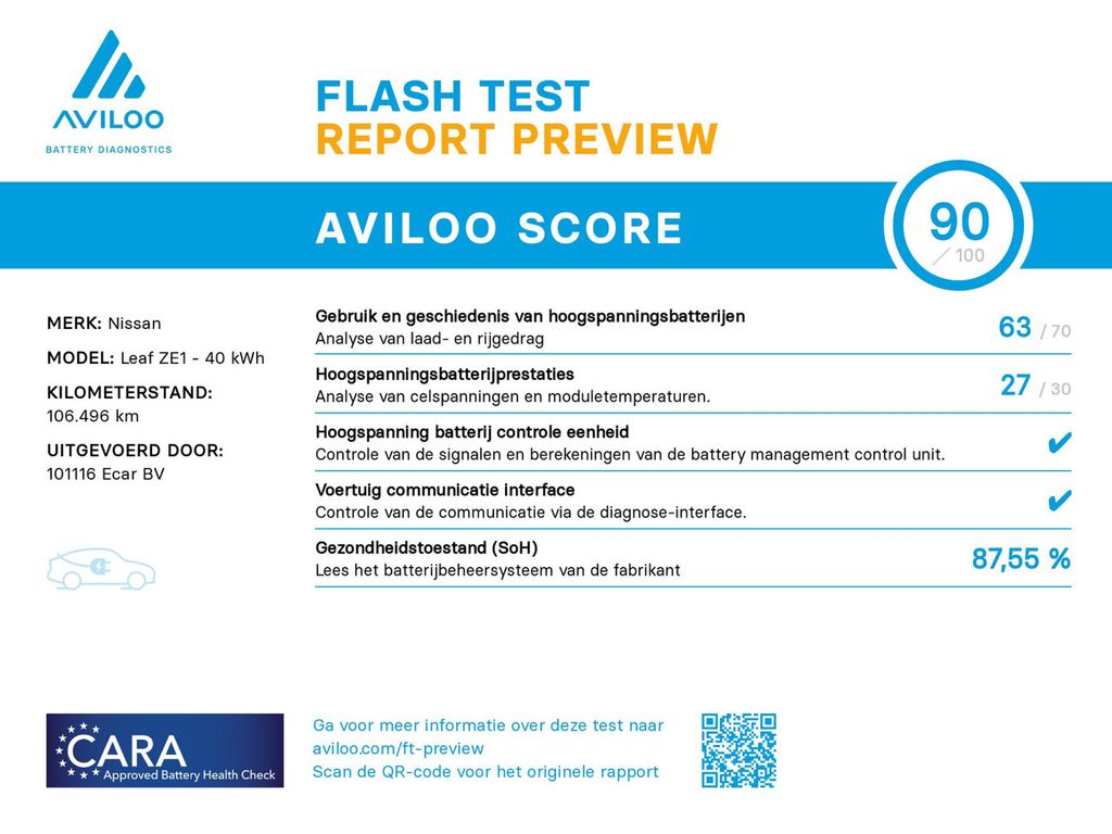 Press the accelerator and feel the phenomenal power of the electric motor. In an electric car you drive dynamically and relaxed at the same time. This Nissan LEAF is from the year 2018 and has 106496 kilometers on the counter. Silent enjoyment at low costs? Then this electric motor is something for you! High-quality comfort functions such as seat heating, heated rear seat and a heated steering wheel make this car an exceptional choice. Also 17 inch alloy wheels, LED headlights, electrically folding exterior mirrors, dark tinted glass at the rear, split folding rear seat and LED taillights are on board.