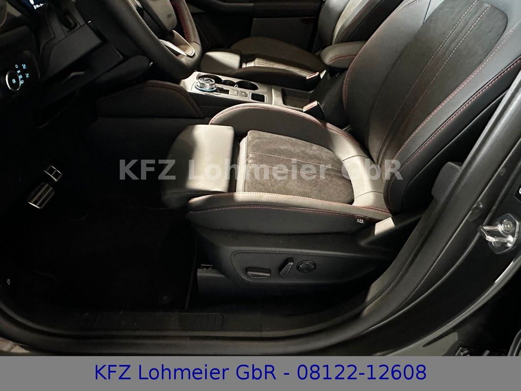 Adaptive Geschwindigkeits-Regelanlage mit Stop&Go-Funktion, Adaptive Scheinwerfer LED mit Abbiegelicht, Ambiente-Beleuchtung vorn (LED), Antischlupfregelung (ASR), Audio-Navigationssystem Ford mit AppLink, Außenspiegel elektr. anklappbar, Außenspiegel elektr. verstell- und heizbar, Body-Styling-Paket, Bordcomputer, Bremssättel Rot lackiert, Brillenfach in Dachhimmel / Dachkonsole integriert, Dachhimmel Stoff, dunkel, Dachreling schwarz, Dachspoiler (große Ausführung) Wagenfarbe, Doppelendrohr Auspuffanlage, Eco-Anzeige für verbrauchsoptimiertes Fahren (EcoCoach), Einstiegschienen mit Modell-Schriftzug, Elektromotor 92 kW (Hybridantrieb), Ergonomiesitze vorn, Fahrassistenz-System: aktiver Park-Assistent Plus, Ein- und Auspark-Funktion und teilautomatisierter Fahrzeugführung, Fahrassistenz-System: Ausweich-Assistent (Evasive Steer Assistance, ESA), Fahrassistenz-System: Fahrspur-Pilot, Fahrassistenz-System: Falschfahrer-Warnfunktion, Fahrassistenz-System: Notbrems-Assistent, Fahrassistenz-System: Post-Collision-System, Fahrassistenz-System: Pre-Collision-System, Fahrassistenz-System: Spurhalteassistent, Fahrassistenz-System: Totwinkel-Assistent, Cross Traffic Alert und Notbremsfunktion, Fahrassistenz-System: Verkehrsschildassistent, Fensterheber elektrisch vorn + hinten mit Komfortschließung, FordPass Connect inkl. eCall, Fußmatten ST-Design, Gepäckraumabdeckung / Rollo, Getriebe Automatik - ECVT, Heckleuchten LED, Hybrid 140 kW (Motor 2,5 Ltr. - 112 kW), Induktionsladeschale für mobile Endgeräte, Innenspiegel mit Abblendautomatik, Intelligent Protection System (IPS), Intelligenter Geschwindigkeits-Begrenzer, Isofix-Aufnahmen für Kindersitz, Karosserie: 5-türig, Kindersicherung elektrisch, Klimaautomatik 2-Zonen, Kofferraumdeckel / Heckklappe elektr. betätigt (Öffnung, sensorgesteuert), Kombiinstrument Digitalanzeige 12,3 Zoll, Kopfstützen vorn 4-fach verstellbar, Lackierung Blazer-Blau, Lendenwirbelstütze Sitz vorn links, Lendenwirbelstütze Sitz vorn rechts, Lenkrad (Sport/Leder, ST), Lenksäule (Lenkrad) höhen-/längsverstellbar, LM-Felgen, Mittelarmlehne hinten, My Key (2. Fahrzeugschlüssel programmierbar), Off-Road Multi-Meter-Anzeigen inkl. Neigungswinkel, Kompass, Parkbremse elektrisch mit Auto-Hold-Funktion, Parkpilotsystem vorn und hinten, Pedale Aluminium, Radstand 2710 mm, Reifendruck-Kontrollsystem, Rückfahrkamera, Rücksitzlehne geteilt, Rücksitzlehne klappbar, Schadstoffarm nach Abgasnorm Euro 6d, Schalt-/Wählhebelgriff Aluminium, Scheibenrahmen schwarz, Scheinwerfer mit Ausschaltverzögerung, Scheinwerfer-Assistent mit Tag-/Nachtsensor, SCR-System (AdBlue-Technologie), Seitenscheiben vorn Akustikglas, Sitzbezug / Polsterung: Kunstleder / Stoff Wildleder Optik, Sitzheizung vorn, Sonnenblende links mit Spiegel (beleuchtet), Sonnenblende rechts mit Spiegel (beleuchtet), Türkantenschutz / Schutzprofil vorn und hinten (Door Edge Protector), Verglasung hinten abgedunkelt (Privacy Glass)