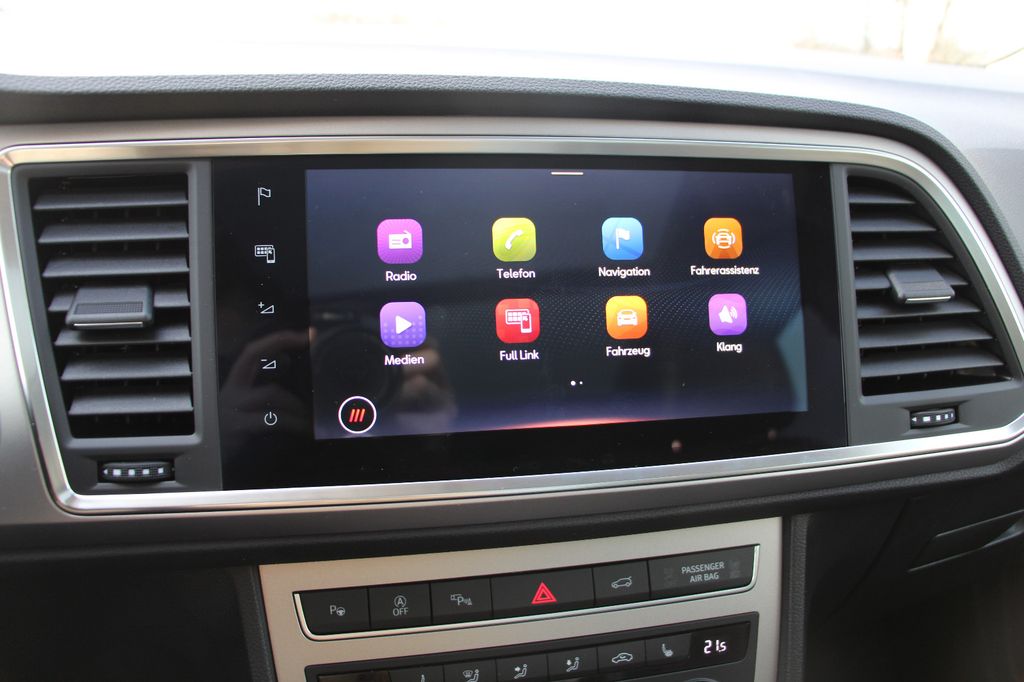 3. Bremsleuchte, Ablagetasche an Vordersitzlehnen, Airbag Beifahrerseite abschaltbar, Airbag Fahrer-/Beifahrerseite, Antriebs-Schlupfregelung (ASR), Außenspiegel elektr. verstell-, heiz- und anklappbar mit Spiegelabsenkung, Außenspiegel Wagenfarbe, Blinkleuchten LED in Außenspiegel integriert, Bluetooth-Schnittstelle mit Freisprecheinrichtung integriert, Bordcomputer, Brillenfach, Design-Paket Exterieur, silber, Doppeltonhorn, Einstiegsleisten beleuchtet, Elektron. Querdifferentialsperre (XDS), Fahrassistenz-System: Berganfahr-Assistent (Hill-Holder), Fahrassistenz-System: Fahrprofilauswahl (SEAT Drive Profile), Fahrassistenz-System: Müdigkeitserkennung, Fahrassistenz-System: Umfeldbeobachtungssystem (Front assist) mit City-Notbremsfunktion, Fensterheber elektrisch vorn + hinten mit Komfortschaltung, Gepäckraumabdeckung / Rollo, Handschuhfach beleuchtet, Heckleuchten LED mit dynamischem Blinklicht, Innenraumlicht-Paket LED, Isofix-Aufnahmen für Kindersitz, Karosserie: 5-türig, Klimaanlage Climatronic 2-Zonen, Knieairbag Fahrerseite, Kofferraumbeleuchtung, Kopf-Airbag-System, Lendenwirbelstütze Sitz vorn links, verstellbar, Lendenwirbelstütze Sitz vorn rechts, verstellbar, Licht- und Sicht-Paket, Mittelarmlehne hinten, Mittelkonsole vorn mit Mittelarmlehne, Becherhalter, Ablagebox und Luftausströmer hinten, Modellpflege, Motor 2,0 Ltr. - 110 kW TDI, Nebelscheinwerfer LED mit Abbiegelicht, Notrufsystem, Parkbremse elektrisch mit Auto-Hold-Funktion, Radstand 2638 mm, Reifen-Reparaturset, Reifenkontroll-Anzeige, Rückfahrkamera, Rücksitzlehne geteilt/klappbar (1/3-2/3), Schadstoffarm nach Abgasnorm Euro 6d, Schalt-/Wählhebelgriff Leder, Scheinwerfer Voll-LED, Schließ-/Startsystem Kessy, SEAT Media-System Plus, Seitenairbag, Seitenscheiben hinten und Heckscheibe abgedunkelt, Sitz vorn links höhenverstellbar, Sitz vorn rechts höhenverstellbar, Sonnenblende links mit Spiegel (beleuchtet), Sonnenblende rechts mit Spiegel (beleuchtet), Start/Stop-Anlage, Steckdose (12V-Anschluß) vorn, USB-Ladeanschlüsse (2-fach, Typ C) für 2.Sitzreihe, Verzurrösen Koffer-/Laderaum, Wärmeschutzverglasung