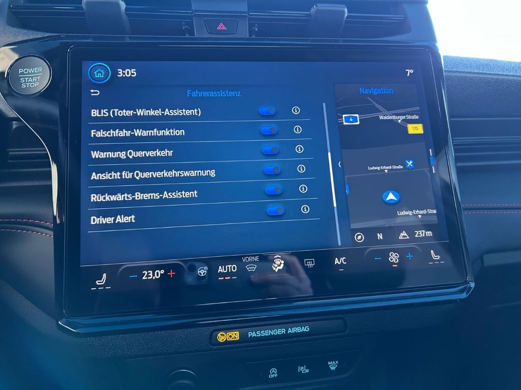 - Weiteres: USB-Anschluss, Lenksäule (Lenkrad) höhen-/längsverstellbar, Reifendruck-Kontrollsystem, KeyFree-System, Scheibenwischer mit Regensensor, Rücksitzlehne geteilt/klappbar (60:40), Getriebe 6-Gang - Typ: 6MX65, Heckleuchten LED, Zentralverriegelung mit Fernbedienung, Sound-System Bang & Olufsen Play, Induktionsladeschale für mobile Endgeräte, Kofferraumdeckel / Heckklappe elektr. betätigt (Öffnung, sensorgesteuert), Scheinwerfer LED, Reifen-Reparaturkit, Mild-Hybrid 92 kW (Motor 1,0 Ltr. - 92 kW EcoBoost), Innenraumfilter: Staub- und Pollenfilter, Scheinwerfer-Assistent mit Tag-/Nachtsensor, Kombiinstrument Digitalanzeige, Stoßfänger Sport-Ausführung, LM-Felgen, Seitenschweller Wagenfarbe, My Key (2. Fahrzeugschlüssel programmierbar), Außenspiegel elektr. anklappbar, Lendenwirbelstütze vorn, Sitze vorn höhenverstellbar, Audio-Navigationssystem, Frontscheibe heizbar, Parkpilotsystem vorn und hinten mit Anzeige für Anhängerrangierweg, Rückfahr-Assistent (Notbremsassistent), Airbag Fahrer-/Beifahrerseite, Tagfahrlicht LED, Seitenairbag vorn, Außenspiegel elektr. verstell- und heizbar, Anti-Blockier-System (ABS), Antischlupfregelung (ASR), Smartphone-Integration (Apple CarPlay und Android Auto), Intelligenter Geschwindigkeits-Begrenzer, Mittelkonsole mit Armlehne, Abstandsregelung (Distance Alert, DA), Adaptive Cruise Control / ACC, Ambiente-Beleuchtung vorn (LED), Antriebsart: Frontantrieb, Audiobedienung am Lenkrad, Auffahrwarnsystem, Beifahrerairbag abschaltbar, Berg-Anfahr-Assistent (Hill-Holder), Blinkleuchte in Außenspiegel integriert, Bodenleuchte im Außenspiegel, Body-Styling-Paket, Dachspoiler (große Ausführung) Wagenfarbe, Fahrer-Assistenz-Paket, Falschfahrer-Warnfunktion, Farbdisplay, Fensterheber elektrisch vorn und hinten mit Komfortschließung, FordPass Connect inkl. eCall, Getränkehalter vorn, Gurtstraffer, Gurtwarner hinten, Innenspiegel mit Abblendautomatik, Intelligent Protection System (IPS), Isofix-Aufnahmen für Kindersitz, Klimaautomatik, Komfort-Paket, Kopf-Schulter-Airbag vorn und hinten, Kopfstützen hinten, Lendenwirbelstütze, Lenkrad heizbar, Post-Collision-System, Pre-Collision-System, Radioempfang Digital (DAB), Scheinwerfer mit Abblendautomatik, Servolenkung elektrisch, Sicherheitssystem SYNC mit automatischem Notruf, Sitzheizung vorn, Sport/Leder-Lenkrad ST, Sport-Fahrwerk, Sprachsteuerung und Bluetooth-Schnittstelle, Spurfolgeassistent (Lane Following Assist, LFA), Spurhalteassistent mit Müdigkeitserkennungs-Sensor
