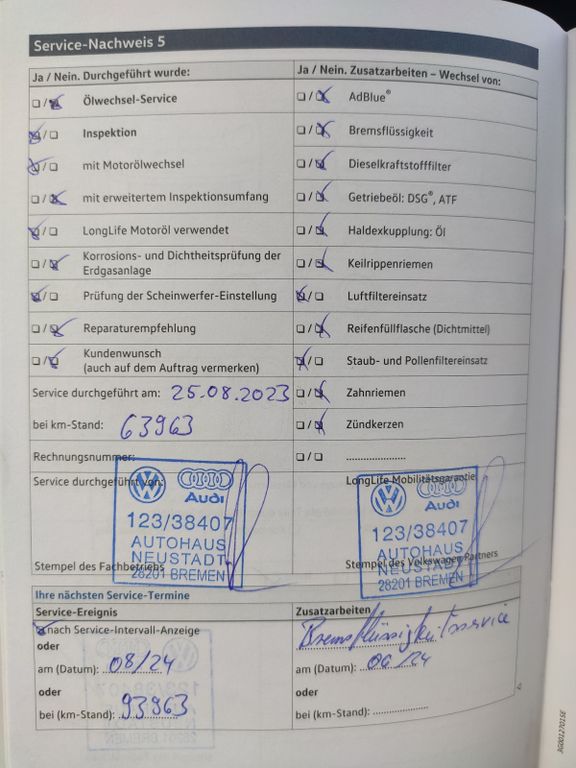 Kompletní servisní historie