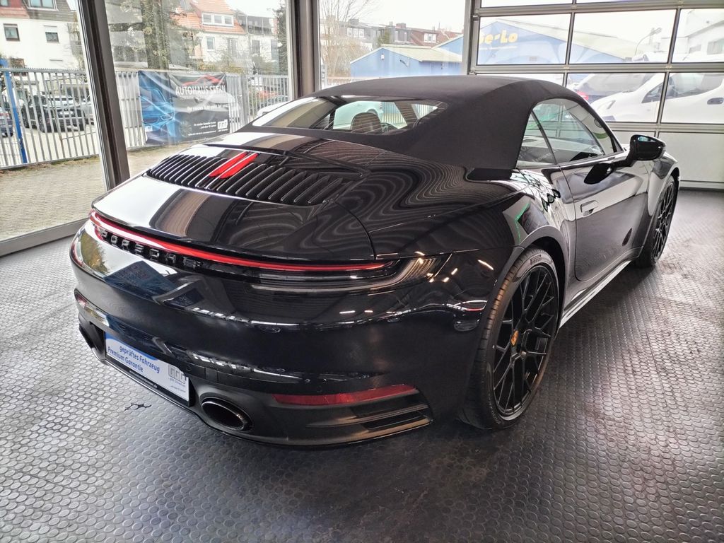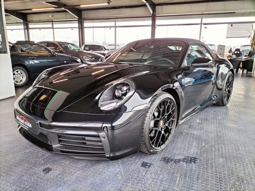 Airbag Fahrer-/Beifahrerseite, Antriebsart: Heckantrieb, Außenspiegel asphärisch, links, Außenspiegel elektr. verstell- und heizbar, beide, Blinkleuchten LED, Cabrio, Connect Plus (Bluetooth, Apple CarPlay, WLAN, Vehicle-Tracking-System), Dachhimmel Stoff, Diebstahl-Warnanlage mit Innenraumüberwachung, Drehzahlmesser, Einschaltautomatik für Fahrlicht, Einstiegsblenden mit Modellbezeichnung (Aluminium), Fahrassistenz-System: Berganfahr-Assistent (Hill-Holder), Fahrassistenz-System: Kollisionswarnsystem mit Bremseingriff und Fußgängererkennung, Fußmatten, Getriebe 8-Gang - Doppelkupplungsgetriebe (PDK), Getränkehalter, Heckleuchten LED, Heckscheibe heizbar, Heckspoiler, Innenraumfilter: Aktivkohlefilter (Geruchsfilter), Interieur-Paket: Diamar Dark Silver, Isofix-Aufnahmen für Kindersitz an Beifahrersitz, Karosserie: 2-türig, Keyless Drive, Kleiderhaken Sitzrückenlehne Leder, Klimaautomatik 2-Zonen, Kopf-Airbag-System Porsche Side Impact Protection System (POSIP), Kopf-Schulter-Airbag vorn (Thoraxbag), Mobile Online Dienste Android Auto, Motor 3,0 Ltr. - 283 kW Turbo KAT, Otto-Partikelfilter (OPF), Parkbremse elektrisch, Porsche Active Suspension Management (PASM), Porsche Communications Management (PCM) inkl. Online - Navigationsmodul, Porsche Traction Management (PTM), Radioempfang digital (DAB+), Reifendruck-Kontrollsystem, Schadstoffarm nach Abgasnorm Euro 6d, Schriftzug Modellreihe, Schwellerabdeckung / -verkleidung lackiert, Sport Taste, Start/Stop-Anlage, Turbo, Vehicle-Tracking-System (PVTS), Verdeckbetätigung elektrisch, Verglasung getönt, Windschott elektrisch
