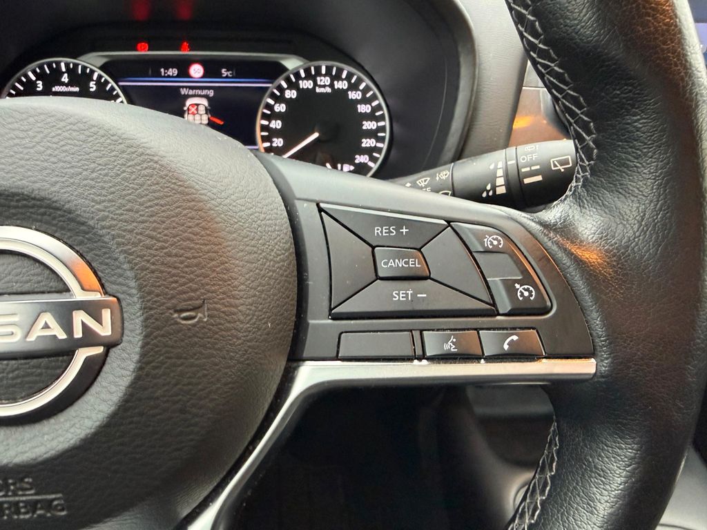 6 Lautsprecher, Abdeckkappen Außenspiegel Schwarz, Airbag Beifahrerseite abschaltbar, Airbag Fahrer-/Beifahrerseite und Seitenairbag vorn, Ambiente-Beleuchtung, Audiosystem: Radio, Ausstattungs-Paket: Nissan Connect, Außenspiegel elektr. verstellbar, Außenspiegel mech. von innen verstellbar, Außentemperaturanzeige, Bremsassistent (Nissan Brake-Assist), Dachantenne im Haifischflossen-Design, Dachhimmel schwarz, Dachspoiler, Einparkhilfe hinten, Einparkhilfe vorn und hinten, Fahrassistenz-System: Aktive Fahrkomfortregelung (Fahrwerksdämpfung), Fahrassistenz-System: aktiver Spurhalteassistent, mit korrigierendem Bremseingriff, Fahrassistenz-System: Autonomer Notbrems-Assistent, Fahrassistenz-System: Berganfahr-Assistent, Fahrassistenz-System: Fernlichtassistent, Fahrassistenz-System: Kurvenbremskontrolle (Aktive Spurkontrolle), Fahrassistenz-System: Sicherheitssystem ERA GLONASS mit automatischem Notruf, Fahrassistenz-System: Verkehrszeichenerkennung, Fahrer-Informations-System (FIS) mit Farbdisplay, Fahrmodusschalter, Fensterheber elektrisch vorn + hinten, Gepäckraumabdeckung / Rollo, Geschwindigkeits-Begrenzeranlage, Isofix-Aufnahmen für Kindersitz, Karosserie: 5-türig, Kopf-Airbag-System, Kopfstützen vorn und hinten verstellbar, Lenksäule (Lenkrad) höhenverstellbar, Leseleuchte vorn, LM-Felgen, Motor 1,0 Ltr. - 84 kW 12V KAT, Nebelscheinwerfer LED, Parkbremse elektrisch, Radioempfang digital (DAB+), Radstand 2636 mm, Reifen-Reparaturset, Reifendruck-Kontrollsystem, Rückfahrkamera, Rücksitz geteilt/klappbar, Schadstoffarm nach Abgasnorm Euro 6d, Service-System: Nissan Connect Services, Sitz vorn links höhenverstellbar, Sitzbezug / Polsterung: Stoff, Smartphone Schnittstelle (Apple CarPlay & Android Auto), Sonnenblenden mit Spiegel (beleuchtet), Sportsitze vorn (Monoform-Design), Sprachbediensystem Spracherkennung, Start-Stop-Knopf, Start/Stop-Anlage, Steckdose (12V-Anschluß), Türgriffe innen verchromt, Türverkleidung Kunstleder, Verglasung hinten abgedunkelt