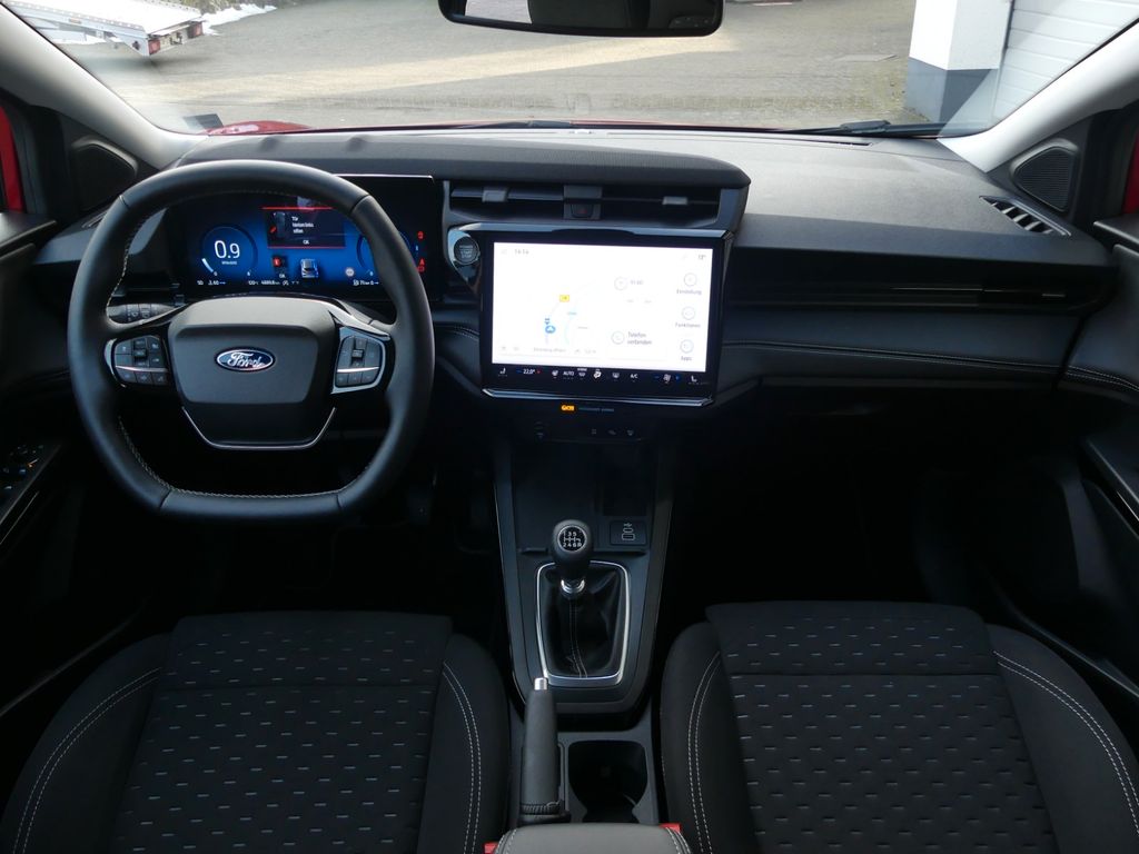 6 Lautsprecher, Ambiente-Beleuchtung vorn (LED), Antischlupfregelung (ASR), Audio-Navigationssystem Ford Cloud-Navigationssystem, Audiobedienung am Lenkrad, Außenspiegel elektr. verstell- und heizbar, Blinkleuchte in Außenspiegel integriert, Body-Styling-Paket, Bordcomputer, Dachhimmel Stoff, Eco-Anzeige für verbrauchsoptimiertes Fahren (EcoCoach), Einparkhilfe hinten, Fahrassistenz-System: Berganfahr-Assistent (Hill-Holder), Fahrassistenz-System: Falschfahrer-Warnfunktion, Fahrassistenz-System: Fernlichtassistent (Scheinwerfer mit Abblendautomatik), Fahrassistenz-System: Notbrems-Assistent, Fahrassistenz-System: Post-Collision-System, Fahrassistenz-System: Pre-Collision-System (Kamera-basiert), Fahrassistenz-System: Spurhalteassistent mit Müdigkeitserkennungs-Sensor, Fahrassistenz-System: Verkehrsschildassistent, Farbdisplay (12 Zoll), Fensterheber elektrisch vorn + hinten mit Komfortschließung, Fußmatten Teppich, Getriebe 6-Gang - Typ: 6MX65, Heckleuchten LED, Innenraumfilter: Staub- und Pollenfilter, Innenspiegel mit Abblendautomatik, Intelligent Protection System (IPS), Intelligenter Geschwindigkeits-Begrenzer, Isofix-Aufnahmen für Kindersitz, Karosserie: 5-türig, Klimaautomatik, Kopfstützen hinten mechan. verstellbar (3 Stück), Lackierung Cactus Grey, Laderaumboden variabel (Ford Megabox), Lendenwirbelstütze Sitz vorn links, Lenksäule (Lenkrad) höhen-/längsverstellbar, LM-Felgen, Mild-Hybrid 92 kW (Motor 1,0 Ltr. - 92 kW EcoBoost), Modellpflege, My Key (2. Fahrzeugschlüssel programmierbar), Nebelscheinwerfer LED, Otto-Partikelfilter (OPF), Radioempfang digital (DAB), Radstand 2588 mm, Reifen-Reparaturkit, Reifendruck-Kontrollsystem, Rücksitzlehne geteilt/klappbar (60:40), Schadstoffarm nach Abgasnorm Euro 6d-TEMP, Schadstoffarm nach Abgasnorm Euro 6e, Scheinwerfer LED, Scheinwerfer-Assistent mit Tag-/Nachtsensor, Sitz vorn links höhenverstellbar, Sonnenblende links mit Spiegel (beleuchtet), Sonnenblende rechts mit Spiegel (beleuchtet), Sportsitze vorn, Standard Variante, Start/Stop-Anlage, Türgriffe außen Wagenfarbe