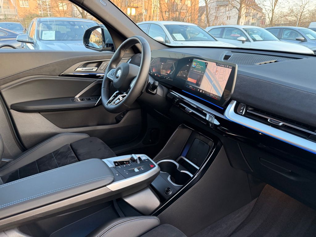 Adaptives Fahrwerk M-Technic, Airbag Beifahrerseite abschaltbar, Airbag Fahrer-/Beifahrerseite, Alpin-Lackierung (Uni), Außenausstattung: Shadow-Line Hochglanz, Außenspiegel elektr. verstell- und heizbar, BMW Live Cockpit Plus, Bremsenergierückgewinnung (Rekuperationssystem), Dachhimmel Anthrazit, Diebstahlsicherung für Räder (Felgenschlösser), Erste Hilfe-Kasten / Verbandkasten, Fahrassistenz-System: Active Guard (Bremsassistent), Fahrassistenz-System: Anfahr-Assistent, Fahrassistenz-System: Aufmerksamkeits-Assistent, Fahrassistenz-System: Performance Control, Fahrassistenz-System: Post-Crash-System (PC-iBrake), Fußraumbeleuchtung hinten, Fußraumbeleuchtung vorn, Gepäckraumbeleuchtung, Getriebe 7-Gang - Doppelkupplungsgetriebe mit Steptronic und Schaltwippen, Getränkehalter, Heckklappenbetätigung automatisch, Heckleuchten LED, Instrumententafel Luxury, Isofix-Aufnahmen für Kindersitz an Beifahrersitz, Isofix-Aufnahmen für Kindersitz an Rücksitz, Karosserie: 5-türig, Kennzeichenbeleuchtung LED, Klimaautomatik 2-Zonen mit autom. Umluft-Control, erweiterter Umfang, Kopf-Airbag-System hinten, Kopf-Airbag-System vorn, Laderaumboden herausnehmbar, Leseleuchten hinten, Leseleuchten vorn, LM-Felgen, M Sport, Motor 1,5 Ltr. - 115 kW Mild-Hybrid, Multimedia-Schnittstelle 2 x USB (Typ C) Mittelkonsole vorn und 2 x USB-Ladeanschluß (Typ C) Mittelkonsole hinten, Otto-Partikelfilter (OPF), Parkassistent-Paket, Parkbremse elektrisch, Personalisierungssystem (BMW My Modes), Radioempfang digital (DAB+), Radstand Standard, Reifendruck-Kontrollsystem, Rücksitzlehne geteilt/klappbar (40:20:40), Schadstoffarm nach Abgasnorm Euro 6e, Scheibenwaschdüsen heizbar, Scheinwerfer LED, Seitenairbag vorn, Serien-Fahrwerk, Service-System: ConnectedDrive Services, Service-System: Gesetzlicher Notruf, Service-System: Intelligenter Notruf inkl. TeleServices, Sitzbezug / Polsterung: M Alcantara / Veganza Kombination (Schwarz mit blau Kontraststeppung), Sportsitze vorn, Start/Stop-Anlage (Funktion), Steckdose (12V-Anschluß) in Mittelkonsole und Koffer-/Laderaum (4-fach), Warndreieck