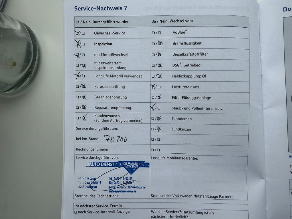 Abdeckung Schiebetürleiste, Airbag Beifahrer abschaltbar, Airbag Fahrer-/Beifahrerseite, Außenspiegel asphärisch, links, Außenspiegel konvex, rechts, Bodenbelag im Fahrerhaus: Gummi, Fahrassistenz-System: Bremsassistent (HBA), Fahrassistenz-System: Multikollisionsbremse (Multi Collision Brake), Fahrwerk 17", Fenster im Lade-/FG-Raum: - feststehend, vorn und hinten links, Fenster im Lade-/FG-Raum: - feststehend, vorn und hinten rechts, Frontscheibe Verbundglas getönt, Handschuhfach abschließbar, Heckklappe mit Verglasung, Innenraumfilter: Pollenfilter, Innenspiegel abblendbar, Karosserie/Aufbau: Kombi Standard, Karosserievariante: Normaldach, Kindersicherung an den Schiebetüren, Kraftstofftank: 70 Ltr., Lenksäule (Lenkrad) verstellbar, Motor 2,0 Ltr. - 150 kW TDI, Nichtraucher-Paket, Radstand 3400 mm, Reifenkontroll-Anzeige, Schadstoffarm nach Abgasnorm Euro 6, Schiebetür Lade-/Fahrgastraum rechts, Sitzbezug / Polsterung: Stoff, Start/Stop-Anlage Motor, Türablagekasten vorn, Verkleidung im Lade-/FG-Raum: Holzfaser, Wärmeschutzverglasung