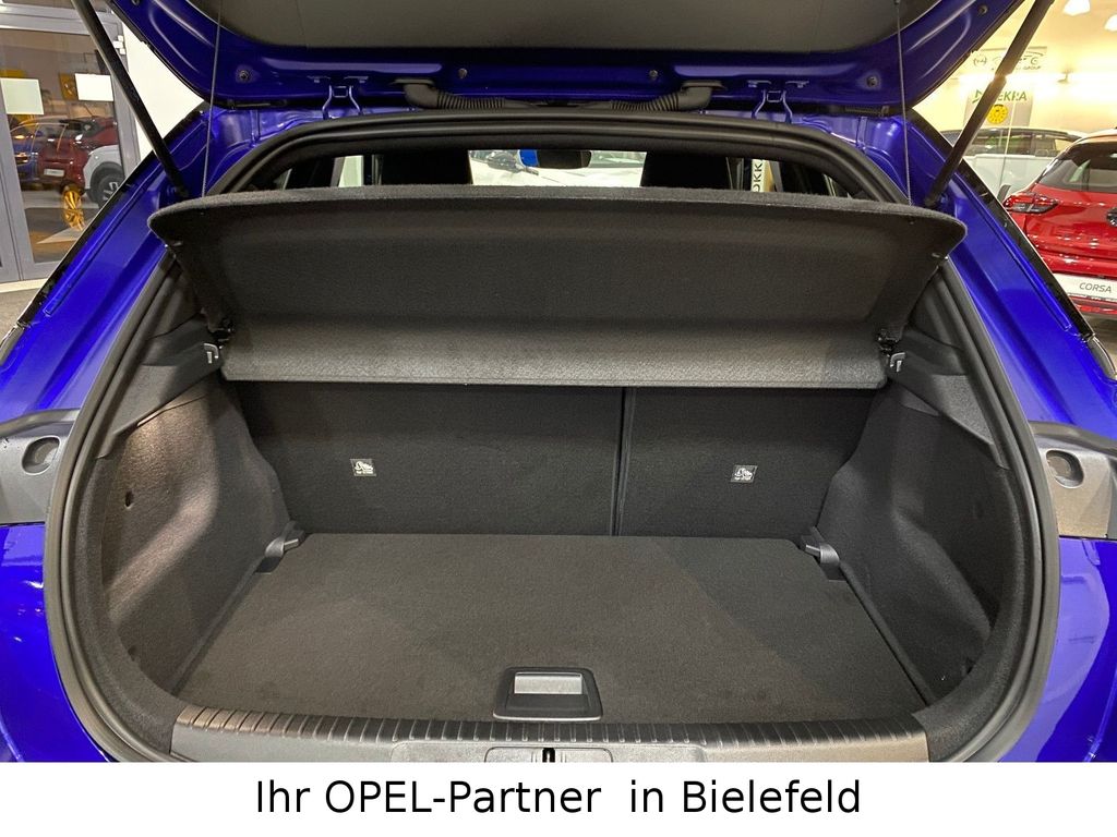 Außenspiegel elektr. verstell- und heizbar, elektr. anklappbar, Black-Paket, Bluetooth Audio-Streaming, DAB-Tuner (Radioempfang digital), Dach Kontrast-Lackierung, Dachhimmel schwarz, Dachspoiler, Elektron. Stabilitäts-Programm Plus (ESP), Fahrassistenz-System: Fernlichtassistent, Fahrassistenz-System: Müdigkeitserkennungs-Sensor, Fahrassistenz-System: Verkehrszeichenerkennung, Fahrzeugschlüssel (2), Feststellbremse elektrisch, Freisprecheinrichtung Bluetooth, Getriebe Automatik - mit Start-/Stop (8-Stufen), Heckleuchten LED, Karosserie: 5-türig, Klimaautomatik, Kopf-Airbag-System, Lenkrad heizbar, LM-Felgen, Modellpflege, Motor 1,2 Ltr. - 96 kW, MP3-Schnittstelle für Mobiltelefon/Handy, Nebelscheinwerfer LED, Opel Connect, Otto-Partikelfilter (OPF), Parkpilotsystem hinten, Radstand 2557 mm, Reifen-Reparaturkit, Schadstoffarm nach Abgasnorm Euro 6e, Seitenairbag vorn, Sicht-Paket, Sitzbezug / Polsterung: Stoff / Ledernachbildung, Wärmeschutzverglasung, Wärmeschutzverglasung hinten abgedunkelt (Solar-Protect)