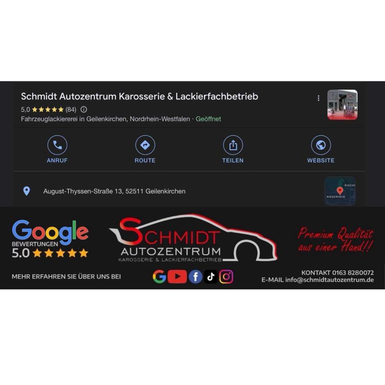 Wir sind ein namhafter Karosserie - und Lackierfachbetrieb mit hoher Auftragslage, deshalb ist es uns leider nicht immer möglich, in kürzester Zeit auf E-Mails zu antworten. Wenn Sie schneller Informationen über das Fahrzeug erfahren möchten, kontaktieren Sie uns gerne telefonisch oder via WhatsApp unter 0163 8280072. Der zuständige Mitarbeiter beantwortet gerne alle ihre Fragen. Wir bitten um Verständnis.