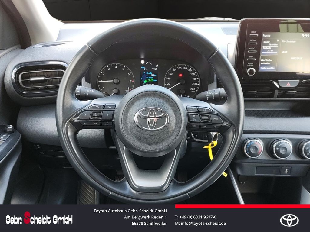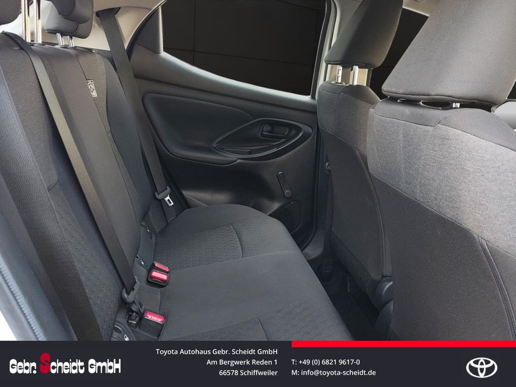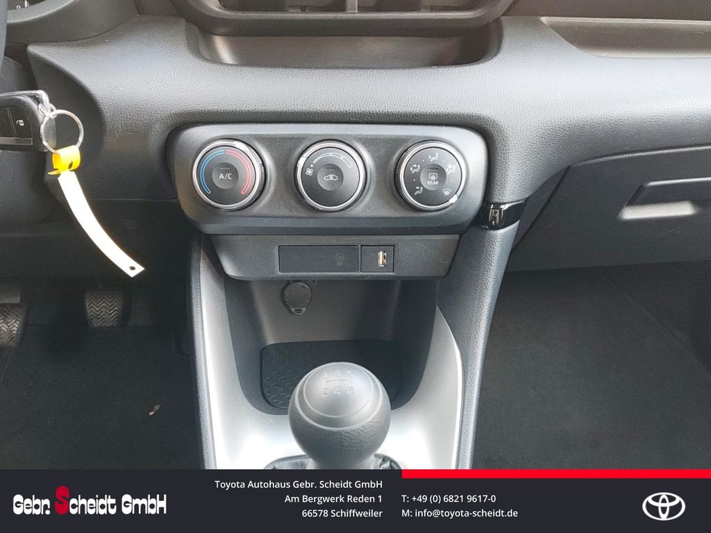 - Weiteres: Klimaanlage, Reifendruck-Kontrollsystem, Rückfahrkamera, Schalt-/Wählhebelgriff Leder, Reifen-Reparaturkit, Schadstoffarm nach Abgasnorm Euro 6d, Innenraumfilter: Staub- und Pollenfilter mit Aktivkohlefilter, Airbag Fahrer-/Beifahrerseite, Anti-Blockier-System (ABS), Lenkrad mit Schaltwippen, Fensterheber elektrisch vorn, Seitenairbag vorn, Außenspiegel elektr. verstell- und heizbar, Wegfahrsperre, Getriebe 5-Gang, Gepäckraumabdeckung / Rollo, Lenksäule (Lenkrad) verstellbar, Rücksitz geteilt, Aktive Kopfstützen, aktiver Spurhalteassistent (Lenkunterstützung), Audiobedienung am Lenkrad, Auffahrwarnsystem (Forward Collision Warning, FCW), Autom. Begleitfunktion der Beleuchtung (Follow me home), Autonome Notbremsfunktion (AEB), Beifahrerairbag abschaltbar, Berganfahrkontrolle (HAC), Blinkleuchte in Außenspiegel integriert, Eco-Anzeige für verbrauchsoptimiertes Fahren, Elektr. Bremskraftverteilung, ESP mit Schlupfregelung (VSC mit TRC), Fernlichtassistent (Abblendautomatik Fahrlicht, AHB), Freisprechanlage mit Sprachsteuerung, Geschwindigkeits-Begrenzeranlage, Gurtwarner hinten, Isofix-Aufnahmen für Kindersitz, Kreuzungs-Assistent, Lederlenkrad, Leseleuchte, Motor 1,0 Ltr. - 53 kW KAT, Müdigkeitserkennungs-Sensor, Parkbremse elektrisch (EPB), Pre-Collision-System (PCS), Rücksitz klappbar, Seitenairbag vorn und hinten, Servolenkung elektrisch, Sicherheitssystem Toyota Connect mit automatischem Notruf (eCall), Sitzhöhenverstellung Fahrersitz, Spurhalteassistent, Tagfahrlicht, Verkehrszeichenerkennung (RSA), Warnanlage für Sicherheitsgurte vorn