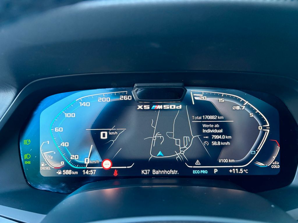 3. Bremsleuchte LED, Adaptives Fahrwerk M-Technic, Aerodynamik-Paket M-Technic, Airbag Fahrer-/Beifahrerseite, Ambiente-Beleuchtung, Auspuffanlage (links/rechts) mit Chromblenden, Ausstattungs-Paket: Connected Professional, Außenausstattung: Shadow-Line Hochglanz, Außenspiegel elektr. anklappbar, alle Spiegel mit Abblendautomatik, Außenspiegel elektr. verstell- und heizbar, BMW Live Cockpit Professional, Bremsanlage: M Sportbremsen (Bremssättel lackiert), Bremsassistent, Dachhimmel Anthrazit (BMW Individual), Diebstahlsicherung für Räder (Felgenschlösser), Dynamische Bremsleuchte, Einstiegsleisten mit Schriftzug M-Technic, Fahrassistenz-System: Active Guard Plus (Spurhalteassistent, Frontkollisionswarnung), Fahrassistenz-System: Aufmerksamkeits-Assistent, Fahrassistenz-System: BMW Gestiksteuerung, Fahrassistenz-System: Fahrerlebnisschalter, Fahrassistenz-System: Rückfahr-Assistent, Fußgänger-Schutzsystem passiv, Fußmatten Velours, Gepäckraum-Abtrennung (Netz), Harnstofftank (SCR): 22 Ltr., Heckklappe zweiteilig, Heckleuchten LED, Innenraumfilter: Aktivkohlefilter (Geruchsfilter), Isofix-Aufnahmen für Kindersitz, Karosserie: 5-türig, Kopf-Airbag-System hinten, Kopf-Airbag-System vorn, Kopfstützen hinten, Lenksäule (Lenkrad) elektr. verstellbar, Leseleuchten hinten, Leseleuchten vorn, Leuchtweitenregelung (automatisch), LM-Felgen, Mittelarmlehne hinten, Motor 3,0 Ltr. - 294 kW Turbodiesel, Nichtraucher-Paket, NOx-Speicherkatalysator (BMW Blue Performance), Park-Distance-Control (PDC) vorn und hinten, Parkassistent-Paket, Parkbremse elektrisch, Personalisierungssystem (Personal Profile), Radstand 2975 mm, Reifendruck-Kontrollsystem, Reifenpannen-Anzeige, Rücksitzlehne geteilt/klappbar (40:20:40), Schadstoffarm nach Abgasnorm Euro 6d-TEMP, Scheibenwaschdüsen heizbar, SCR-System (AdBlue-Technologie), Seitenairbag vorn, Service-System: ConnectedDrive Services, Service-System: Intelligenter Notruf inkl. TeleServices, Sitzausstattung: 5-Sitzer, Sitze vorn elektr. verstellbar (links mit Memory), Sport-Auspuffanlage M, Sportdifferential, Start/Stop-Anlage (Funktion), Steckdose (12V-Anschluß) 3-fach, Unterfahrschutz, USB-Schnittstelle, Wärmeschutzverglasung getönt