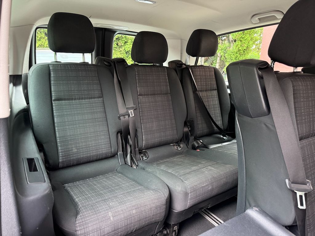 3. Bremsleuchte, Adaptives Bremslicht, Airbag Beifahrerseite, Airbag Fahrerseite, Anfahrhilfe (Berganfahr-Assistent), Anzeige für Waschwasserstand, Auflastung auf 3,1 t, Außenspiegel asphärisch, beide, Außenspiegel elektr. verstell- und heizbar, beide, Außentemperaturanzeige, Befestigungsschienen für Dachträger, BlueEfficiency-Paket, Bodenbelag: Fahrgastraum TPO, Bremsassistent, Bremssystem mit ABS+ASR, Dachbedieneinheit mit Lesespot Fahrer-/Beifahrerseite, Dachverkleidung, Design- und Ausstattungslinie PRO, Einstiegsgriff hinten, Fahrassistenz-System: Anfahr-Assistent (Berganfahr-Assistent), Fahrassistenz-System: Attention-Assist (Müdigkeitserkennungs-Sensor), Fahrassistenz-System: Pannenmanagement, Fahrassistenz-System: Seitenwind-Assistent, Fenster für hintere Türen / Heckklappe mit Wisch-/Waschanlage, Fenster im Lade-/FG-Raum: - feststehend, hinten, Fenster im Lade-/FG-Raum: - feststehend, vorn links, Fenster im Lade-/FG-Raum: - feststehend, vorn rechts, Frontscheibe mit Scheibenantenne, Generator 150 A, Getriebe Automatik GTronic - (9-Stufen), Getränkehalter vorn, Gurtstraffer, Haltegriffe im Fond, Handschuhfach abschließbar, Harnstofftank (AdBlue): 24 Ltr., Heckscheibe heizbar, Heckscheibenwischer, Innenverkleidung gehobene Ausführung, Karosserie/Aufbau: extra lang, Karosserie/Aufbau: Kombi, Kindersicherung, Kommunikationsmodul (LTE) für digitale Dienste, Kopf-Airbag-System (Windowbag), Kopf-Schulter-Airbag (Thoraxbag) Fahrer-/Beifahrerseite, Lenkrad (Lenksäule mech. verstellbar), Mercedes-Benz Notrufsystem, Motor 2,0 Ltr. - 100 kW CDI KAT, Nebelschlussleuchte, PKW-Zulassung, Pro, PTC Heater, Radstand 3430 mm, Reifendruck-Kontrollsystem, Rückspiegel innen, Schadstoffarm nach Abgasnorm Euro 6d-TEMP, Schiebetür Lade-/Fahrgastraum rechts mit Verglasung, SCR-System (AdBlue-Technologie), Sicherheitsgurt-System mit Warnanlage (Fahrer-/Beifahrerseite), Sitzbezug / Polsterung: Stoff, Stahlfelgen 6,5x16, Vlies-Batterie 92 Ah, Warmluftkanal zum Lade-/Fahrgastraum, Wartungsintervall-Anzeige Assyst, Wärmeschutzverglasung