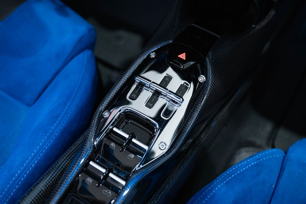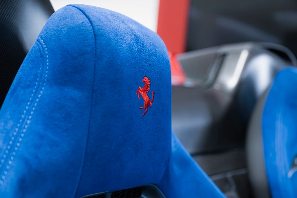 TDF style comfort seats in Blu Elettrico Alcantara with black leather backrests and inserts under headrests in Grigio Nart