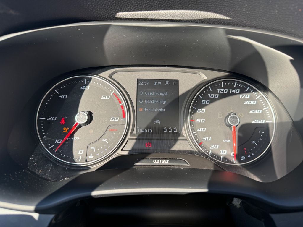 3. Bremsleuchte, 8 Lautsprecher, Ablagetasche an Vordersitzlehnen, Airbag Beifahrerseite abschaltbar, Airbag Fahrer-/Beifahrerseite, Ambiente-Beleuchtung LED, Antriebs-Schlupfregelung (ASR), Außenspiegel elektr. verstell-, heiz- und anklappbar mit Spiegelabsenkung, Außenspiegel Wagenfarbe, Blinkleuchten LED in Außenspiegel integriert, Bluetooth-Schnittstelle mit Freisprecheinrichtung integriert, Bordcomputer, Brillenfach, Einparkhilfe hinten, Elektron. Querdifferentialsperre (XDS), Fahrassistenz-System: Berganfahr-Assistent (Hill-Holder), Fahrassistenz-System: Müdigkeitserkennung, Fahrassistenz-System: Umfeldbeobachtungssystem (Front assist) mit City-Notbremsfunktion, Fensterheber elektrisch vorn + hinten mit Komfortschaltung, Fußraumbeleuchtung vorn, Handschuhfach beleuchtet, Heckleuchten LED, Isofix-Aufnahmen für Kindersitz, Karosserie: 5-türig, Klimaanlage Climatronic 2-Zonen, Knieairbag Fahrerseite, Kofferraumbeleuchtung, Kopf-Airbag-System, Lendenwirbelstütze Sitz vorn links, verstellbar, Lendenwirbelstütze Sitz vorn rechts, verstellbar, Lenkrad (Sport/Leder) mit Multifunktion, LM-Felgen, Mittelarmlehne hinten, Mittelkonsole vorn mit Mittelarmlehne, Becherhalter, Ablagebox und Luftdüsen hinten, Modellpflege, Motor 2,0 Ltr. - 110 kW TDI, Nebelscheinwerfer LED mit Abbiegelicht, Notrufsystem, Parkbremse elektrisch mit Auto-Hold-Funktion, Radstand 2638 mm, Reifenkontroll-Anzeige, Rücksitzlehne geteilt/klappbar (1/3-2/3), Schadstoffarm nach Abgasnorm Euro 6d, Schalt-/Wählhebelgriff Leder, Scheinwerfer Voll-LED, SEAT Media-System Plus, Seitenairbag, Sitz vorn links höhenverstellbar, Sitz vorn rechts höhenverstellbar, Sitzbezug / Polsterung: Stoff, Start/Stop-Anlage, Stau-/Ablagefach unter Sitz vorn links, Steckdose (12V-Anschluß) vorn, USB-Ladeanschlüsse (2-fach, Typ C) für 2.Sitzreihe, Verzurrösen Koffer-/Laderaum, Wärmeschutzverglasung