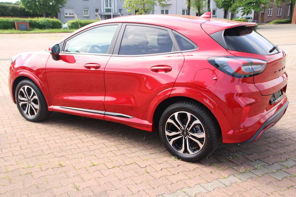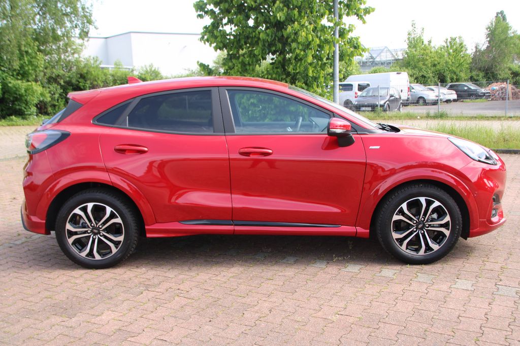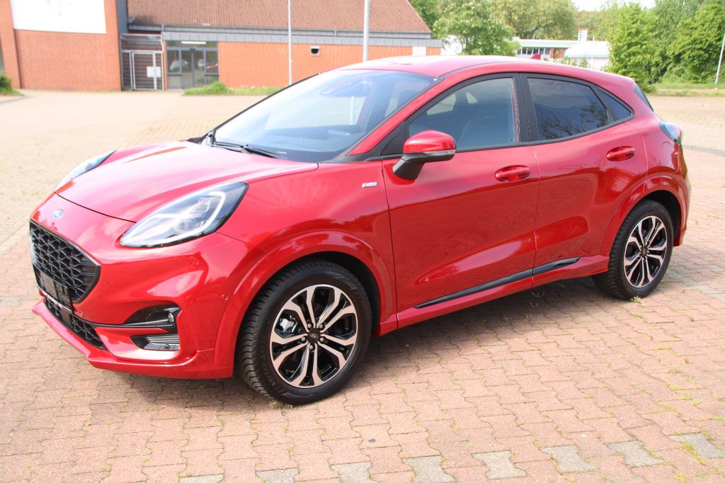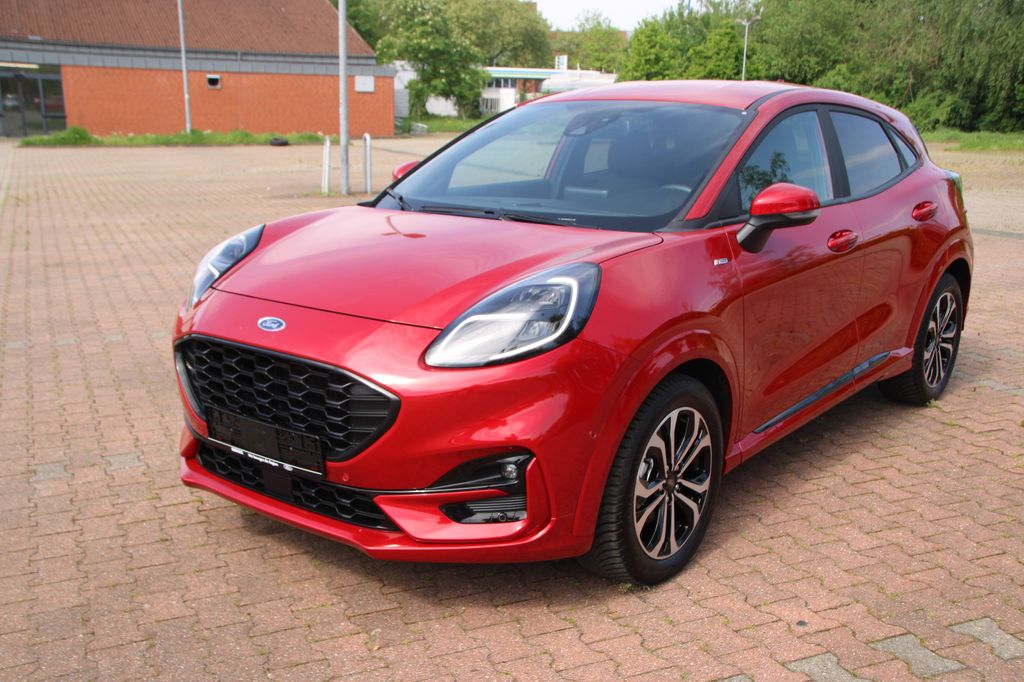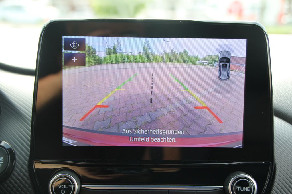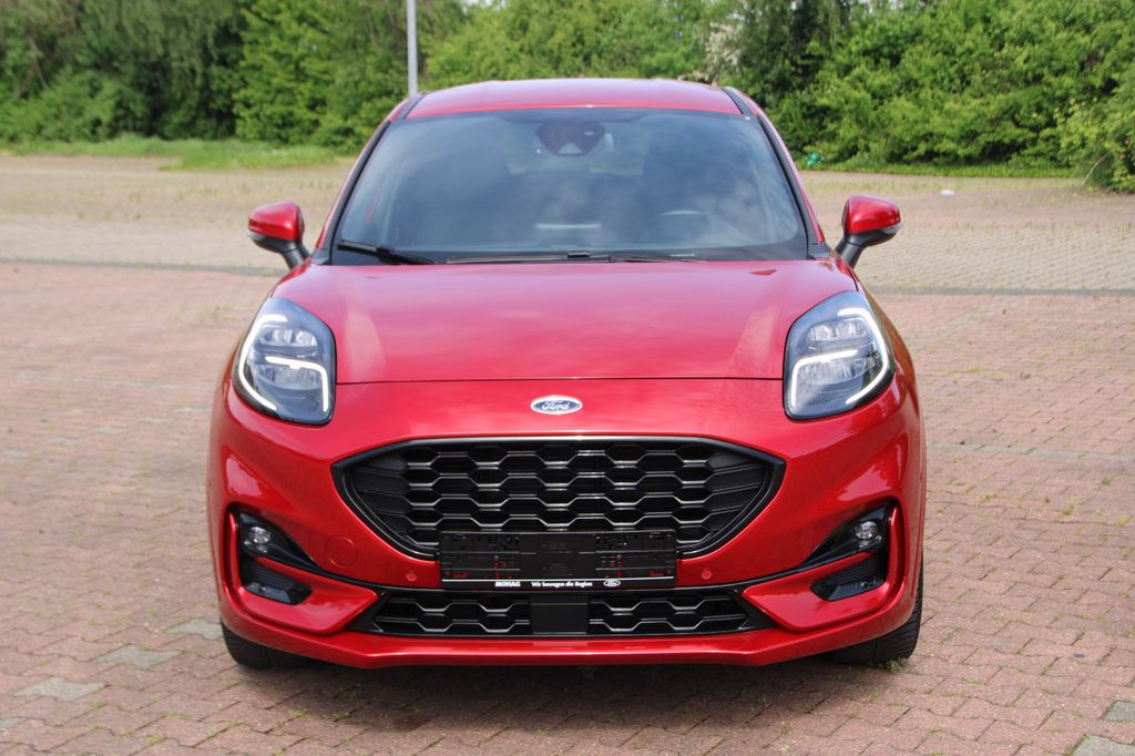 Ambiente-Beleuchtung vorn (LED), Antischlupfregelung (ASR), Audio-Navigationssystem Ford mit AppLink, Außenspiegel elektr. anklappbar, Außenspiegel elektr. verstell- und heizbar, Body-Styling-Paket, Dachhimmel Stoff, dunkel, Eco-Anzeige für verbrauchsoptimiertes Fahren (EcoCoach), Einparkhilfe hinten, Fahrassistenz-System: Berganfahr-Assistent (Hill-Holder), Fahrassistenz-System: Falschfahrer-Warnfunktion, Fahrassistenz-System: Fernlichtassistent (Scheinwerfer mit Abblendautomatik), Fahrassistenz-System: Notbrems-Assistent, Fahrassistenz-System: Post-Collision-System, Fahrassistenz-System: Pre-Collision-System, Fahrassistenz-System: Spurhalteassistent mit Müdigkeitserkennungs-Sensor, Fahrassistenz-System: Verkehrsschildassistent, Farbdisplay für Bordcomputer, Fensterheber elektrisch vorn + hinten mit Komfortschließung, FordPass Connect inkl. eCall, Fußmatten Teppich, Getriebe 6-Gang - Typ: 6MX65, Heckleuchten LED, Innenraumfilter: Staub- und Pollenfilter, Intelligent Protection System (IPS), Intelligenter Geschwindigkeits-Begrenzer, Isofix-Aufnahmen für Kindersitz, Karosserie: 5-türig, Kombiinstrument Digitalanzeige 12,3 Zoll, Komfort-Paket, Kopfstützen hinten mechan. verstellbar (3 Stück), Lackierung Blazer-Blau, Laderaumboden variabel (Ford Megabox), Lendenwirbelstütze vorn, Lenkrad (Sport/Leder, ST), Lenksäule (Lenkrad) höhen-/längsverstellbar, LM-Felgen, Mild-Hybrid 114 kW (Motor 1,0 Ltr. - 114 kW EcoBoost), My Key (2. Fahrzeugschlüssel programmierbar), Nebelscheinwerfer LED, Otto-Partikelfilter (OPF), Pedale Aluminium, Radstand 2588 mm, Reifen-Reparaturkit, Reifendruck-Kontrollsystem, Rücksitzlehne geteilt/klappbar (60:40), Schadstoffarm nach Abgasnorm Euro 6d, Scheinwerfer-Assistent mit Tag-/Nachtsensor, Sitzbezug / Polsterung: Kunstleder, Sitze vorn höhenverstellbar, Sonnenblende links mit Spiegel (beleuchtet), Sonnenblende rechts mit Spiegel (beleuchtet), Sport-Fahrwerk, Sportsitze vorn, Standard Variante, Start/Stop-Anlage, Türgriffe außen Wagenfarbe, Verglasung hinten abgedunkelt (Privacy Glass)