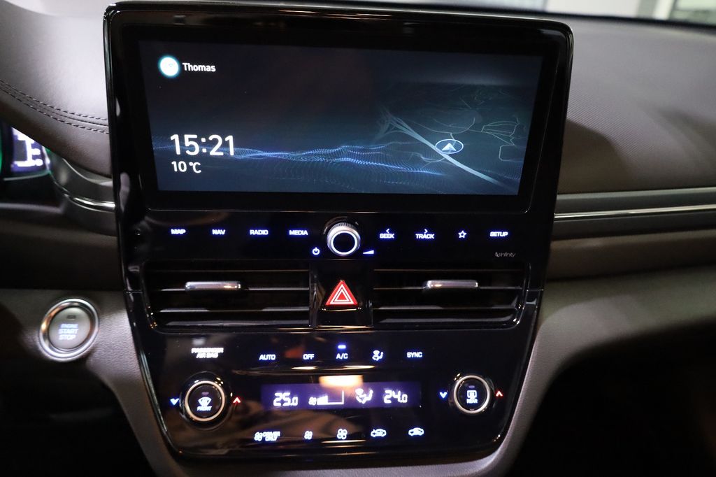 3. Bremsleuchte, Ablagetasche an Vordersitzlehnen, Airbag Beifahrerseite, Airbag Beifahrerseite abschaltbar, Airbag Fahrerseite, Ambiente-Beleuchtung, Audio-/Radio-Fernbedienung am Lenkrad, Audio-Navigationssystem, Außenspiegel elektr. anklappbar, Außenspiegel elektr. verstell- und heizbar, beide, Außenspiegel lackiert, Außenspiegel mit Umfeldleuchte, Blinkleuchte in Außenspiegel integriert, Bordcomputer, Bremsassistent, Einparkhilfe hinten, Einschaltautomatik für Fahrlicht / Lichtsensor, Elektr. Bremskraftverteilung, Elektron. Stabilitätskontrolle (ESC) mit Bremsassistent, Fahrassistenz-System: Aufmerksamkeits-Assistent, Fahrassistenz-System: Autonome Notbremsfunktion inkl. Frontkollisionswarnung (FCA), Fahrassistenz-System: Berganfahrhilfe, Fahrassistenz-System: Fahrprofilauswahl (Drive Mode), Fahrassistenz-System: Fernlichtassistent, Fahrassistenz-System: Sicherheitssystem mit automatischem Notruf (ERA GLONASS / eCall), Fahrassistenz-System: Spurhalteassistent, Warnsystem (LDWS, Lane Departure Warning System), Fahrassistenz-System: Stauassistent, Fahrassistenz-System: Verkehrsschildassistent, Fensterheber elektrisch vorn + hinten, Fensterzierleisten verchromt, Fernentriegelung Tank und/oder Heckklappe, Freisprecheinrichtung Bluetooth, Gegenlenkunterstützung (Vehicle Stability Management, VSM), Gepäcknetz im Koffer-/Laderaum, Gepäckraumabdeckung / Rollo, Geschwindigkeits-Regelanlage (Tempomat) mit Abstandsregelung ACC, Gurtstraffer, Heckleuchten LED, Heckscheibe heizbar, Heckspoiler mit integrierter Bremsleuchte, Hybrid 104 kW (Motor 1,6 Ltr. - 77 kW), Induktionsladeschale für Smartphone, Innenspiegel mit Abblendautomatik, Isofix-Aufnahmen für Kindersitz, Karosserie: 5-türig, Klimaautomatik 2-Zonen, Kopf-Airbag-System, Kopfstützen hinten verstellbar, Lendenwirbelstütze Sitz vorn links, elektr. verstellbar, Lenkrad heizbar, Lenkrad mit Schaltwippen, Leseleuchte, Leuchtweitenregelung, Leuchtweitenregelung automatisch, Licht-aus-Automatik, LM-Felgen, Luftdüsen hinten, Mittelarmlehne hinten mit Getränkehalter, Modellpflege, Parkbremse elektrisch (EPB), Radioempfang digital (DAB+), Reifen-Reparaturkit, Reifendruck-Kontrollsystem, Rückfahrkamera, Rücksitzlehne geteilt/klappbar, Schadstoffarm nach Abgasnorm Euro 6d, Schalt-/Wählhebelgriff Leder, Scheibenbeschlagerkennung / Regelung, Scheinwerfer LED, Scheinwerfer Teil-LED (Abblendlicht), Seitenairbag vorn, Seitenaufprallschutz, Seitenscheiben ab B-Säule abgedunkelt, Service-System: Remote Services (Blue Link), Servolenkung elektronisch gesteuert, Sicherheitsgurte vorn höhenverstellbar, Sitz vorn links höhenverstellbar, Sitz vorn rechts höhenverstellbar, Sitzbezug / Polsterung: Stoff, Sitzheizung vorn, Sonnenblenden mit Spiegel (beleuchtet), Sound-System Infinity (8 Lautsprecher), Start-Stop-Knopf, Start/Stop-Anlage, Stoßfänger Wagenfarbe, Style-Paket, Türgriffe außen Wagenfarbe (mit Chromleiste), Türgriffe innen verchromt, USB-Anschluss + AUX-IN-Anschluss, Verglasung getönt, Warnanlage für Sicherheitsgurte, Fahrer-/Beifahrerseite