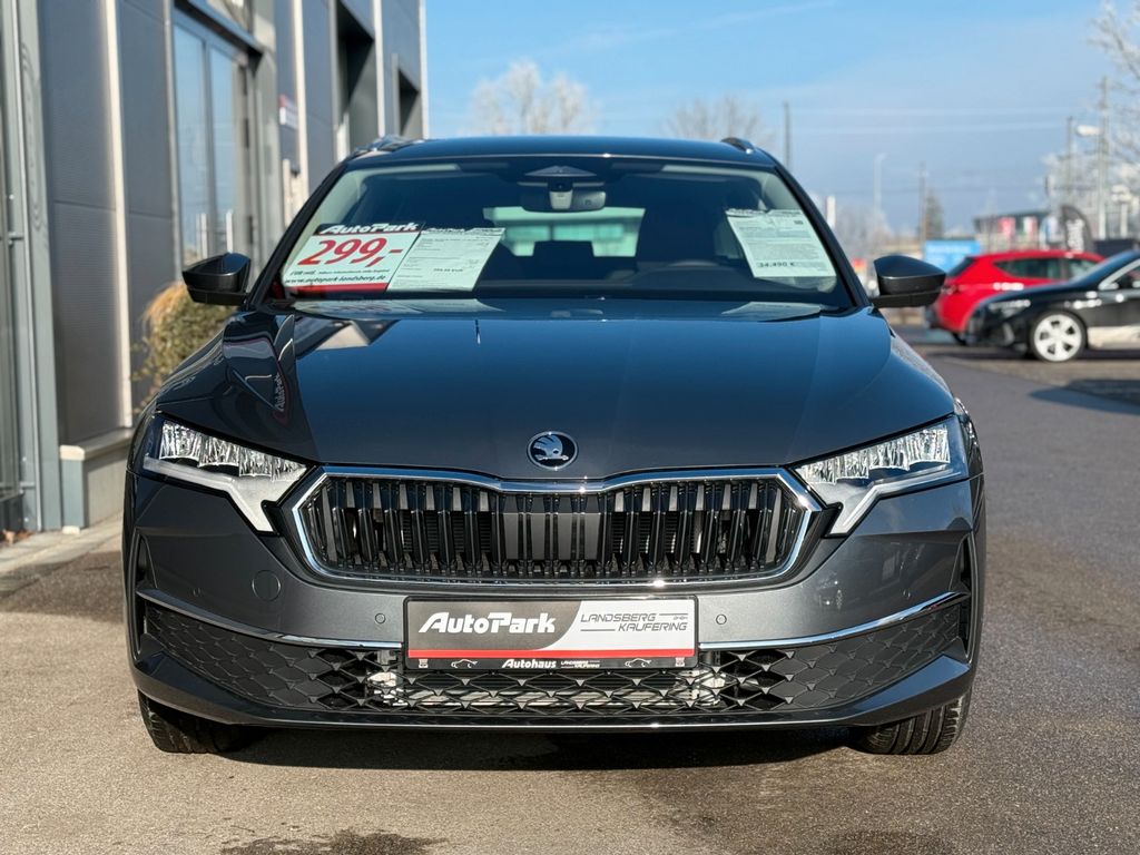 Entdecken Sie den SKODA Octavia Kombi in elegantem Grau-Metallic. Dieses neue Modell aus 11/2025 mit Tageszulassung ohne KM präsentiert sich in hervorragendem Neuzustand. Der 150 PS starke Benzinmotor mit 1498 ccm Hubraum und Frontantrieb bietet dank Automatikgetriebe ein komfortables Fahrerlebnis. Die umfangreiche Ausstattung umfasst ein digitales Cockpit, LED-Scheinwerfer-/ Tagfahrlicht-/& Heckleuchten und eine Zwei-Zonen-Klimaautomatik. Für maximale Sicherheit sorgen zahlreiche Assistenzsysteme wie adaptiver Tempomat, Spurhalteassistent, Totwinkelwarner und Kollisionsvermeidung etc.Der Innenraum in Schwarz mit Stoffbezügen bietet Platz für fünf Personen und überzeugt mit beheizbaren Sitzen, Lenkrad-/& Windschutzscheibenheizung. Zur Konnektivität gehören Apple CarPlay, Android Auto z.B. für Google-Maps, Bluetooth und kabelloses Laden. Die Anhängerkupplung ist vorbereitet für gebremste Anhängelasten bis 1500 kg.
