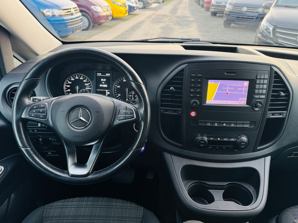 3. Bremsleuchte, Ablagenetz an Vordersitzlehne links, Adaptives Bremslicht, Airbag Beifahrerseite, Airbag Fahrerseite, Anfahrhilfe (Berganfahr-Assistent), Antriebsart: Allradantrieb, Anzeige für Waschwasserstand, Armlehnen Fahrgastraum, Außenspiegel asphärisch, beide, Außenspiegel elektr. verstell- und heizbar, beide, Außentemperaturanzeige, Befestigungsschienen für Dachträger, BlueEfficiency-Paket, Bremsassistent, Bremssystem mit ABS+ASR, Deckenleuchte im Laderaum, Design- und Ausstattungslinie PRO, Einschaltautomatik für Fahrlicht, Einstiegsgriff hinten, Fahrassistenz-System: aktiver Park-Assistent, Fahrassistenz-System: Anfahr-Assistent (Berganfahr-Assistent), Fahrassistenz-System: Attention-Assist (Müdigkeitserkennungs-Sensor), Fahrassistenz-System: Seitenwind-Assistent, Fenster für hintere Türen / Heckklappe mit Wisch-/Waschanlage, Fenster im Lade-/FG-Raum: - elektr. ausstellbar, hinten links/rechts, Fenster im Lade-/FG-Raum: - feststehend, vorn links, Fenster im Lade-/FG-Raum: - feststehend, vorn rechts, Frontscheibe mit Scheibenantenne, Generator 150 A, Getränkehalter hinten, Getränkehalter vorn, Gurtstraffer, Haltegriff Beifahrerseite, Haltegriffe im Fond, Handschuhfach abschließbar, Heckklappe mit Verglasung, Heckscheibe heizbar, Heckscheibenwischer, Innenverkleidung gehobene Ausführung, Karosserie/Aufbau: Kombi Standard, Karosserie/Aufbau: lang, Kindersicherung, Kombiinstrument mit Pixel-Matrix-Display, Kopf-Airbag-System (Windowbag), Kopf-Schulter-Airbag (Thoraxbag) Fahrer-/Beifahrerseite, Lenkrad (Lenksäule mech. verstellbar), Lenkrad mit Multifunktion inkl. Reiserechner, Mittelkonsole mit Staufach, Motor 2,1 Ltr. - 140 kW CDI KAT, Nebelschlussleuchte, PKW-Zulassung, PTC Heater, Radstand 3200 mm, Reifendruck-Kontrollsystem, Rückspiegel innen, Schadstoffarm nach Abgasnorm Euro 6, Scheibenwaschanlage beheizt, Scheibenwischer mit Regensensor, Schiebetür Lade-/Fahrgastraum rechts mit Verglasung, Sicherheitsgurt-System mit Warnanlage (Fahrer-/Beifahrerseite), Sitzbezug / Polsterung: Stoff, Sitze im Fahrerhaus: Beifahrersitz heizbar, Sitze im Fahrerhaus: Beifahrersitz Komfort, Sitze im Fahrerhaus: Fahrersitz heizbar, Sitze im Fahrerhaus: Fahrersitz Komfort, Sitze im Lade-/FG-Raum: 1.Reihe, 3er-Sitzbank Komfort, Sitze im Lade-/FG-Raum: 2.Reihe, 3er-Sitzbank Komfort, Spiegel-Paket, Steckdosen (12V-Anschluß) im Lade-/Fahrgastraum, 2-fach, Verglasung hinten abgedunkelt / Schwarzglas, Vlies-Batterie 92 Ah, Warmluftkanal zum Lade-/Fahrgastraum, Wartungsintervall-Anzeige Assyst, Wärmeschutzverglasung, Regensensor