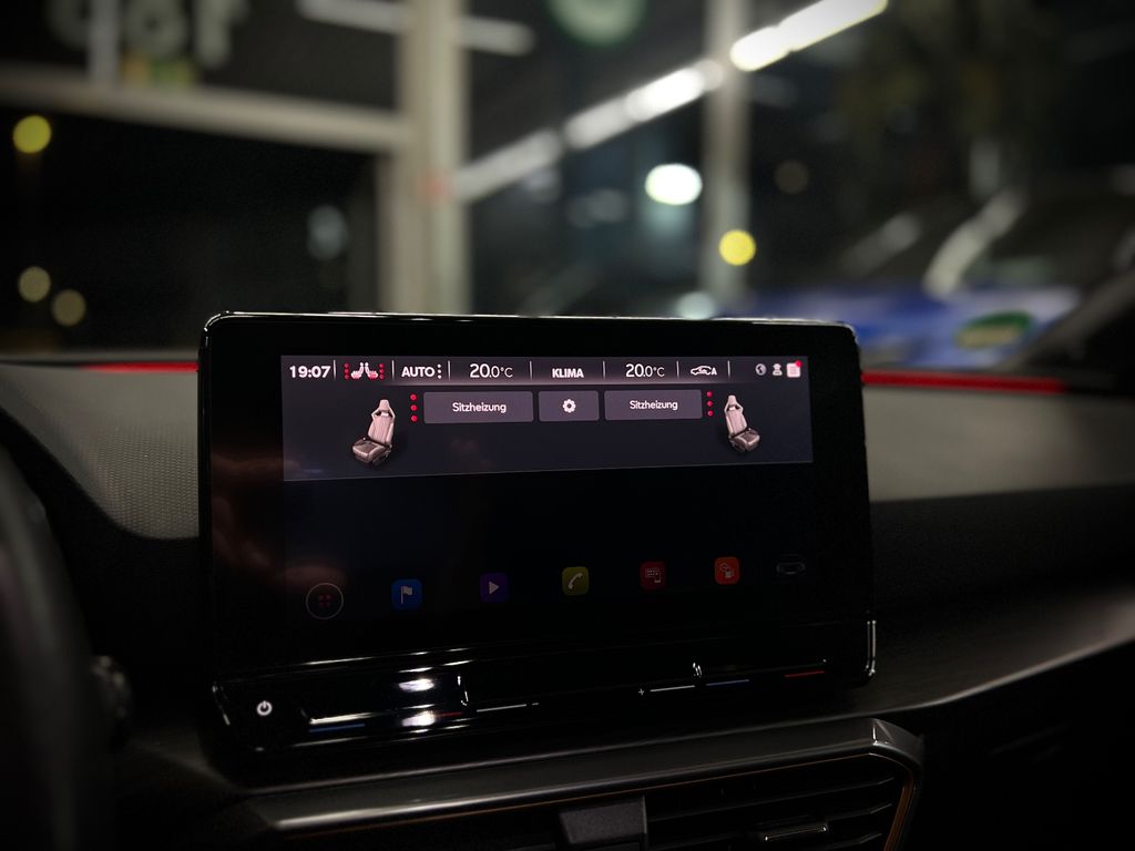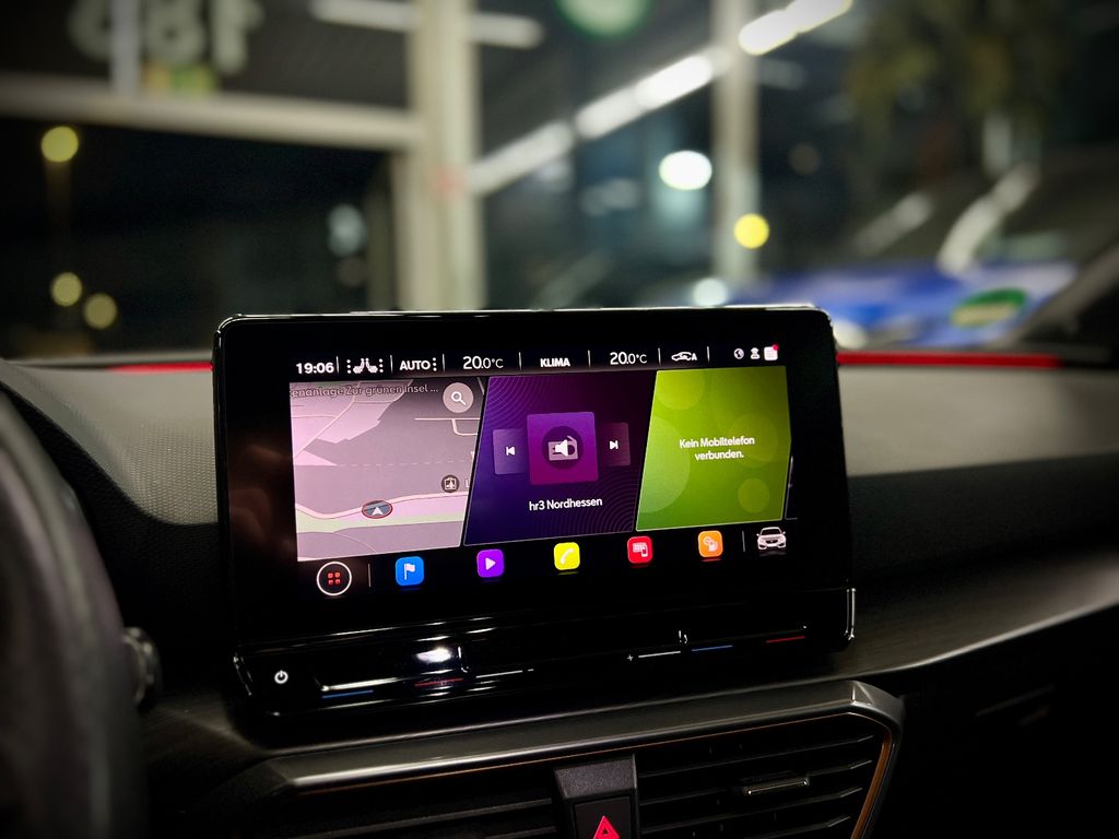 Airbag Beifahrerseite abschaltbar, Airbag Fahrer-/Beifahrerseite, Ambiente-Beleuchtung Smart Ambient Light, Antriebs-Schlupfregelung (ASR), Audio-Navigationssystem mit Touchscreen Farbbildschirm, Außenspiegel elektr. verstell-, heiz- und anklappbar mit Spiegelabsenkung und Welcome Light, Blinkleuchten LED in Außenspiegel integriert, Doppeltonhorn, Einstiegsleisten (Aluminium) vorn, beleuchtet, Elektron. Differentialsperre (XDS), Fahrassistenz-System: Adaptive Fahrwerksregelung (DCC), Fahrassistenz-System: Fahrprofilauswahl (CUPRA Drive Profile), Fensterheber elektrisch vorn + hinten mit Komfortschaltung, Fensterzierleisten schwarz hochglänzend, Gepäckraumabdeckung / Rollo, Heckleuchten LED mit dynamischem Blinklicht, Heckleuchten Voll-LED mit dynamischem Lichtband (Infinite Light), Isofix-Aufnahmen für Kindersitz an Rücksitz, Karosserie: 5-türig, Klimaanlage Climatronic 3-Zonen, Kombiinstrument digital (virtual cockpit), Kopf-Airbag-System, Lendenwirbelstütze Sitz vorn rechts, verstellbar, Licht- und Sicht-Paket, Mittelkonsole vorn mit Mittelarmlehne, Becherhalter, Ablagebox und Luftausströmer hinten, Mobile Online Dienste Cupra Connect, Motor 2,0 Ltr. - 221 kW 16V TSI, Notrufsystem, Otto-Partikelfilter (OPF), Parkbremse elektrisch, Radioempfang digital (DAB+), Reserverad als Notrad, Rücksitzlehne geteilt/klappbar (1/3-2/3), Schadstoffarm nach Abgasnorm Euro 6d, Seitenairbag, Seitenairbag vorn mitte (Central Airbag), Seitenscheiben hinten und Heckscheibe abgedunkelt, Sitz vorn links höhenverstellbar, Sitz vorn rechts höhenverstellbar, Sonnenblende links mit Spiegel (beleuchtet), Sonnenblende rechts mit Spiegel (beleuchtet), Sport-Schalensitze vorn mit integrierten Kopfstützen, Start/Stop-Anlage, USB-Ladeanschlüsse (2-fach, Typ C) für 2.Sitzreihe, USB-Schnittstelle vorn (2-fach, Typ C), Verzurrösen Koffer-/Laderaum, Warnanlage für Sicherheitsgurt-System, Wärmeschutzverglasung