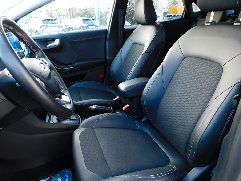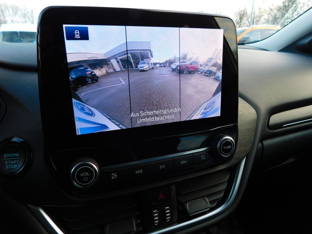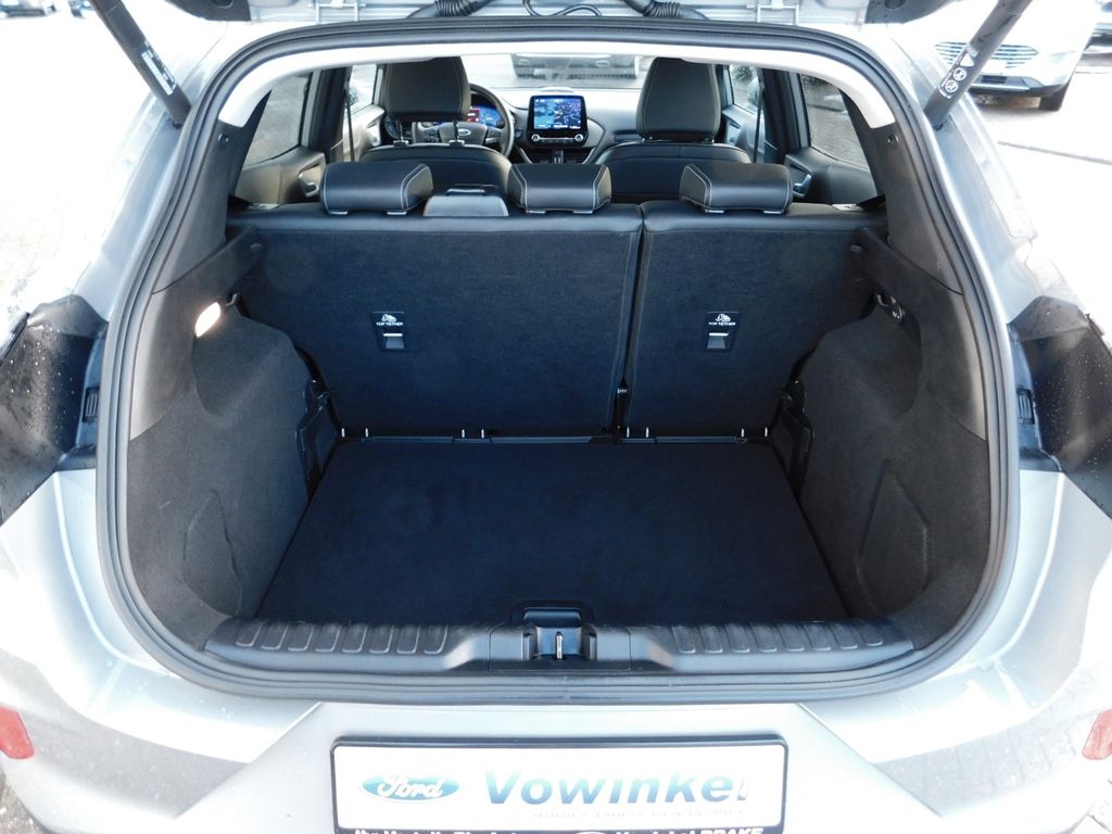 Ambiente-Beleuchtung vorn (LED), Dachreling schwarz , LED-Abblendlicht, LED-Tagfahrlicht, Antischlupfregelung (ASR), Audio-Navigationssystem Ford mit AppLink, Außenspiegel elektr. anklappbar, Außenspiegel elektr. verstell- und heizbar, Bordcomputer, Dachhimmel Stoff, Eco-Anzeige für verbrauchsoptimiertes Fahren (EcoCoach), Einparkhilfe hinten, Fahrassistenz-System: Berganfahr-Assistent (Hill-Holder), alschfahrer-Warnfunktion, Fernlichtassistent (Scheinwerfer mit Abblendautomatik), Notbrems-Assistent, Fahrassistenz-System: Post-Collision-System, Fahrassistenz-System: Pre-Collision-System, Spurhalteassistent mit Müdigkeitserkennungs-Sensor, Fensterheber elektrisch vorn + hinten mit Komfortschließung, FordPass Connect inkl. eCall, Fußmatten Teppich, Heckleuchten LED, Intelligent Protection System (IPS), Intelligenter Geschwindigkeits-Begrenzer, Isofix-Aufnahmen, Kopfstützen hinten mechan. verstellbar (3 Stück), Laderaumboden variabel (Ford Megabox), Lendenwirbelstütze Sitz vorn links, Lenksäule (Lenkrad) höhen-/längsverstellbar, LM-Felgen, , My Key (2. Fahrzeugschlüssel programmierbar), Nebelscheinwerfer LED, Otto-Partikelfilter (OPF), Reifen-Reparaturkit, Reifendruck-Kontrollsystem, Rücksitzlehne geteilt/klappbar (60:40), Schadstoffarm nach Abgasnorm Euro 6d, Scheinwerfer-Assistent mit Tag-/Nachtsensor, Sitze vorn höhenverstellbar, Sonnenblende links mit Spiegel (beleuchtet), Sonnenblende rechts mit Spiegel (beleuchtet), Sportsitze vorn, Türgriffe außen Wagenfarbe, Verglasung hinten abgedunkelt (Privacy Glass)