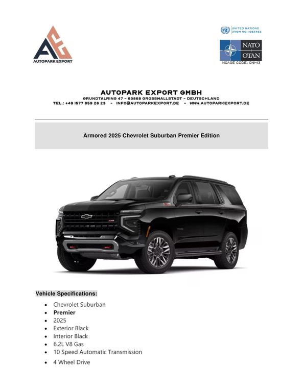 Chevrolet Suburban Premier Edition 2025 – Vollausstattung - Panzerung B7 -8 Wochen Lieferzeit
