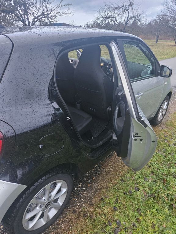 Wir verkaufen diesen flotten silberfarbenen Smart ForFour. Er ist in sehr gutem Zustand, selten gefahren (Hauptsächlich Kurzstrecke), unfallfrei und ist ein Garagenfahrzeug. Der jetztige Besitzer hat das Fahrzeug als Jahreswagen im Mai 2017 gekauft und muss aus Altersgründen das Auto jetzt verkaufen.Hier zusätzliche Informationen zu Sonderausstattungen: