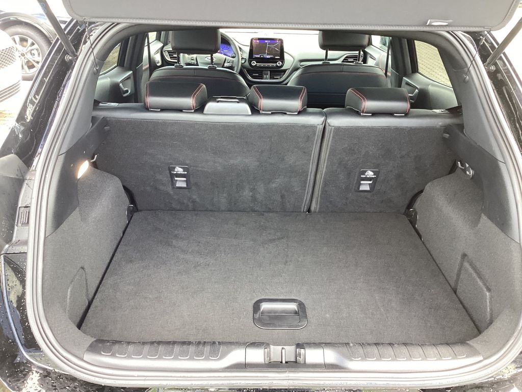 Ambiente-Beleuchtung vorn (LED), Antischlupfregelung (ASR), Audio-Navigationssystem Ford mit AppLink, Außenspiegel elektr. anklappbar, Außenspiegel elektr. verstell- und heizbar, Body-Styling-Paket, Dachhimmel Stoff, dunkel, Eco-Anzeige für verbrauchsoptimiertes Fahren (EcoCoach), Einparkhilfe hinten, Fahrassistenz-System: Berganfahr-Assistent (Hill-Holder), Fahrassistenz-System: Falschfahrer-Warnfunktion, Fahrassistenz-System: Fernlichtassistent (Scheinwerfer mit Abblendautomatik), Fahrassistenz-System: Notbrems-Assistent, Fahrassistenz-System: Post-Collision-System, Fahrassistenz-System: Pre-Collision-System, Fahrassistenz-System: Spurhalteassistent mit Müdigkeitserkennungs-Sensor, Fahrassistenz-System: Verkehrsschildassistent, Farbdisplay für Bordcomputer, Fensterheber elektrisch vorn + hinten mit Komfortschließung, FordPass Connect inkl. eCall, Fußmatten Teppich, Getriebe 7-Gang - Doppelkupplungsgetriebe, Heckleuchten LED, Innenraumfilter: Staub- und Pollenfilter, Intelligent Protection System (IPS), Intelligenter Geschwindigkeits-Begrenzer, Isofix-Aufnahmen für Kindersitz, Karosserie: 5-türig, Kombiinstrument Digitalanzeige 12,3 Zoll, Komfort-Paket, Kopfstützen hinten mechan. verstellbar (3 Stück), Laderaumboden variabel (Ford Megabox), Lendenwirbelstütze vorn, Lenkrad (Sport/Leder, ST), Lenkrad mit Schaltwippen, Lenksäule (Lenkrad) höhen-/längsverstellbar, LM-Felgen, Mild-Hybrid 114 kW (Motor 1,0 Ltr. - 114 kW EcoBoost), My Key (2. Fahrzeugschlüssel programmierbar), Nebelscheinwerfer LED, Otto-Partikelfilter (OPF), Pedale Aluminium, Radstand 2588 mm, Reifen-Reparaturkit, Reifendruck-Kontrollsystem, Rücksitzlehne geteilt/klappbar (60:40), Schadstoffarm nach Abgasnorm Euro 6d, Scheinwerfer LED, Scheinwerfer-Assistent mit Tag-/Nachtsensor, Sitzbezug / Polsterung: Kunstleder, Sitze vorn höhenverstellbar, Sonnenblende links mit Spiegel (beleuchtet), Sonnenblende rechts mit Spiegel (beleuchtet), Sport-Fahrwerk, Sportsitze vorn, Standard Variante, Start/Stop-Anlage, Türgriffe außen Wagenfarbe, Verglasung hinten abgedunkelt (Privacy Glass)
