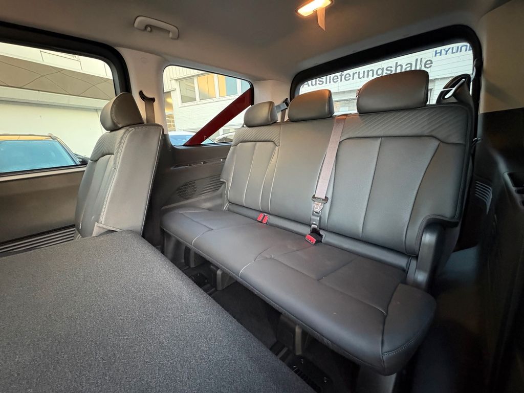 Ablage im Dachhimmel Fahrerhaus, Ablagefach auf Armaturentafel, Ablagetasche an Mittelsitzlehne (1.Sitzreihe), Ablagetasche an Vordersitzlehnen, Airbag Beifahrerseite, Airbag Fahrerseite, Antriebsart: Frontantrieb, Audio-Navigationssystem (DAB+, Bluetooth), Audiosystem: Radio RDS, Ausstellfenster hinten, Automatische Fahrlichtschaltung, Außenspiegel elektr. anklappbar, Außenspiegel elektr. verstell- und heizbar, beide, Außenspiegel in Wagenfarbe, Außenspiegel mit integrierter Blinkleuchte, Bremsassistent, Dachspoiler, Digital Cockpit (Instrumentenanzeige Digital), Easy Access-Paket, Einparkhilfe vorn und hinten, Elektr. Bremskraftverteilung, Fahrassistenz-System: aktiver Spurhalteassistent (LKAS, Lane Keep Assist System), Fahrassistenz-System: aktiver Totwinkel-Assistent, Fahrassistenz-System: Aufmerksamkeits-Assistent, Fahrassistenz-System: Ausstiegswarnung, Fahrassistenz-System: Autobahnassistent (Highway Driving Assist, HDA), Fahrassistenz-System: Autonome Notbremsfunktion inkl. Frontkollisionswarnung (FCA), Fahrassistenz-System: Berganfahr-Assistent, Fahrassistenz-System: Fahrprofilauswahl (Drive Mode), Fahrassistenz-System: Fernlichtassistent, Fahrassistenz-System: Insassenalarm (Rear Occopant Alert, ROA), Fahrassistenz-System: Multikollisionsbremse (Multi Collision Brake), Fahrassistenz-System: Querverkehrs-Assistent Heck (Cross Traffic), Fahrassistenz-System: Sicherheitssystem mit automatischem Notruf (ERA GLONASS / eCall), Fahrassistenz-System: Spurhalteassistent, Fahrassistenz-System: Verkehrszeichenerkennung, erweitert (Geschwindigkeits-Regel-/Begrenzeranlage), Fahrwerksdämpfung elektronisch geregelt (ASD / ECS), Fensterheber elektr. mit Einklemmschutz, Frontscheibe mit Bandfilter oben, Frontscheibe Verbundglas, Gegenlenkunterstützung (Vehicle Stability Management, VSM), Gepäcksicherungsnetz, Getriebe Automatik - (6-Stufen), Getränkehalter vorn, Gurtstraffer, Heckklappenbetätigung elektrisch, Heckleuchten LED, Heckscheibe heizbar, Hybrid 165 kW (Motor 1,6 Ltr. - 118 kW T-GDI), Induktionsladeschale für Smartphone (Wireless Charging), Innenleuchten im Lade-/FG-Raum: LED, Innenspiegel mit Abblendautomatik, Isofix-Aufnahmen für Kindersitz, Karosserie/Aufbau: Bus, Kindersicherung an den Schiebetüren, Klimaautomatik 2-Zonen, Klimaautomatik mit Bedienelemente vorn und hinten, Kopf-Airbag-System, Kopfstützen vorn und hinten verstellbar, Kühlergrill in Wagenfarbe, Lautsprecher (6), Lendenwirbelstütze Sitz vorn links, verstellbar, Lenkrad beheizbar, Lenkrad mit Schaltwippen, Lenksäule (Lenkrad) höhen-/längsverstellbar, Lifetime MapCare (Internetbasierende Dienste), LM-Felgen, Navigationsbasierte Adaptive Geschwindigkeitsregelanlage (Tempomat) mit Abstandsregelung (NSCC), Nebelschlussleuchte, Parkbremse elektrisch (EPB), Positionsleuchten LED, Radstand 3273 mm, Reifen-Reparaturkit, Reifendruck-Kontrollsystem, Rundumverglasung getönt, Schadstoffarm nach Abgasnorm Euro 6e, Schalt-/Wählhebel (Shift by Wire), Scheibenbeschlagerkennung / Regelung, Scheibenwischer mit Regensensor, Scheinwerfer Voll-LED, Schiebefenster in Schiebetür getönt, Schiebetür Lade-/Fahrgastraum links elektr. betätigt, Schiebetür Lade-/Fahrgastraum rechts elektr. betätigt, Seitenairbag, Service-System: Passenger-View Modus, Service-System: Remote Services (Blue Link), Shuttle-Paket, Sicherheitsgurte höhenverstellbar, Sitz vorn links elektr. verstellbar, Sitz vorn links höhenverstellbar, Sitz vorn rechts elektr. verstellbar, Sitzausstattung: 9-Sitzer, Sitzbelüftung vorn, Sitzbezug / Polsterung: Leder, Sitze im Fahrerhaus: Fahrer- und Beifahrersitz heizbar, Sitze im Lade-/FG-Raum: 2.Reihe, 3er-Sitzbank klappbar / geteilt 60:40, Sitze im Lade-/FG-Raum: 2.Reihe, 3er-Sitzbank, verschiebbar, Sitze im Lade-/FG-Raum: 3.Reihe, 3er-Sitzbank, hochklappbar, Sitze im Lade-/FG-Raum: 3.Reihe, 3er-Sitzbank, klappbar, Sitze im Lade-/FG-Raum: 3.Reihe, 3er-Sitzbank, verschiebbar, Smart-Key, Smartphone Schnittstelle (Apple CarPlay & Android Auto), Sonnenblenden mit Spiegel (beleuchtet), Sonnenschutzrollo Fenster hinten (2.Sitzreihe), Sonnenschutzrollo Fenster hinten (3.Sitzreihe), Start-Stop-Knopf, Start/Stop-Anlage, Steckdose (12V-Anschluß) im Fahrerhaus, Tagfahrlicht LED, Touchscreen-Farbdisplay (10,25 Zoll), Türgriffe außen in Wagenfarbe, USB-Anschluss hinten, USB-Anschluss Mittelkonsole, Warnanlage für Sicherheitsgurte, Fahrer-/Beifahrerseite, Wegfahrsperre elektronisch, Zentralverriegelung mit Fernbedienung, Zul. Gesamtgewicht 3,00 t