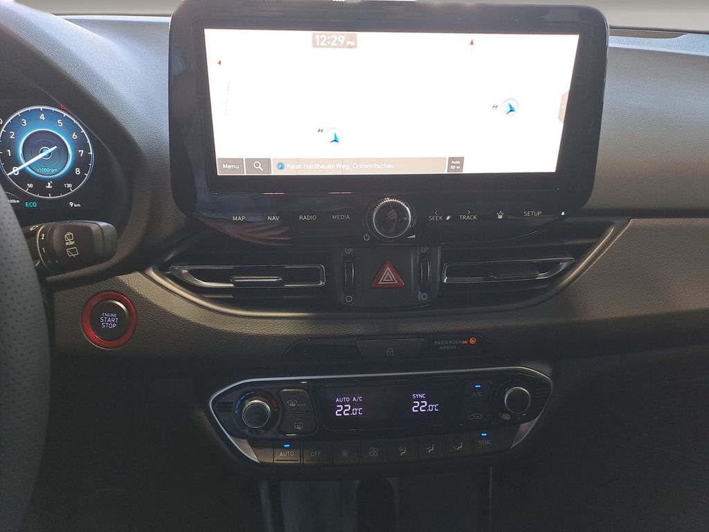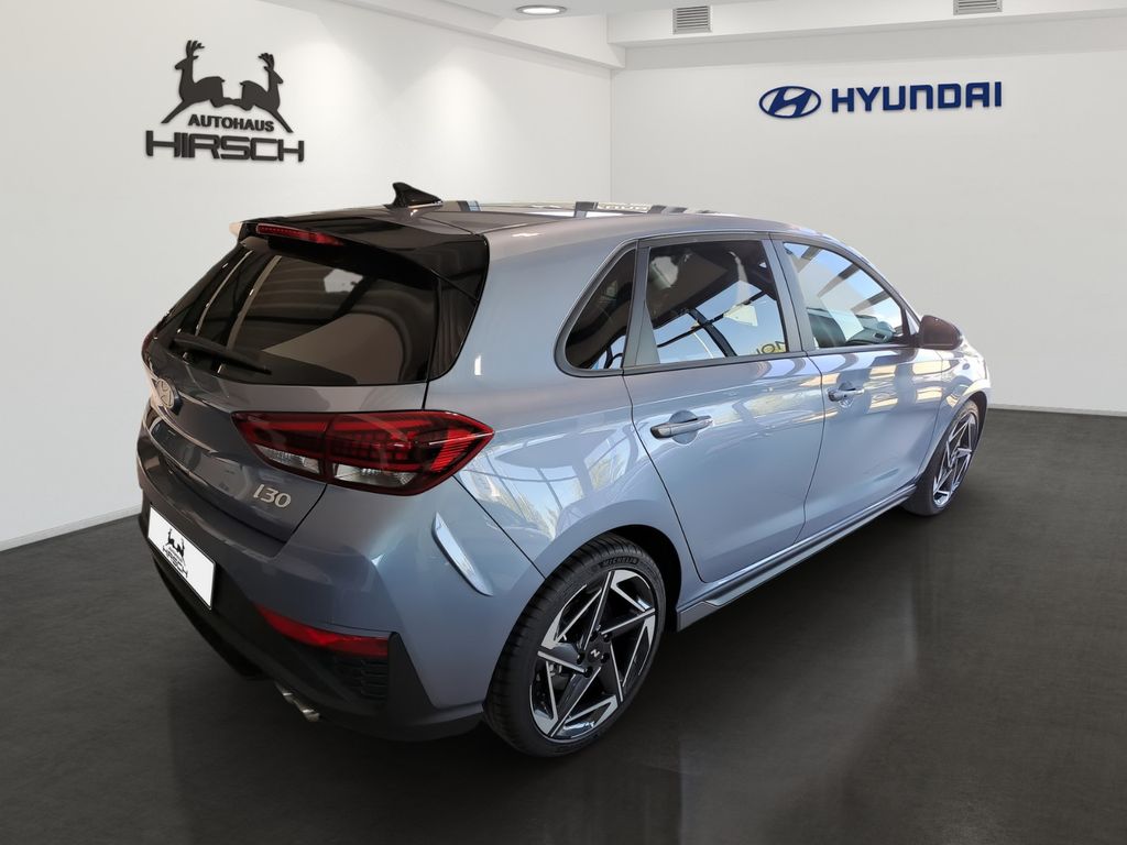 Erleben Sie den Hyundai i30 in elegantem Blau-Metallic – ein Vorführwagen der Extraklasse mit nur einem Vorbesitzer. Dieses Fahrzeug der Limousinen-Kategorie überzeugt durch seine umfangreiche Ausstattung und modernste Technologie. Der 140 PS starke Benzinmotor mit Frontantrieb und Automatikgetriebe bietet ein dynamisches Fahrerlebnis bei gleichzeitiger Effizienz (Euro 6d). Das Interieur in Schwarz mit Alcantara-Elementen und Sportpaket vermittelt ein hochwertiges Ambiente. Die 2-Zonen-Klimaautomatik, beheizte Sitze und das beheizte Lenkrad sorgen für Komfort in jeder Jahreszeit. Für Sicherheit sorgen zahlreiche Assistenzsysteme wie Spurhalteassistent, Totwinkelwarner und adaptiver Tempomat. Das digitale Cockpit und der Touchscreen mit Navigation, Apple CarPlay und Android Auto bieten modernste Konnektivität.- Vorführwagen mit Erstzulassung 2025