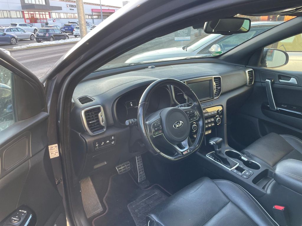 Dieser gepflegte KIA Sportage aus dem Jahr 2018 bietet Ihnen ein umfassendes Paket an Komfort und Sicherheit. Der Allradantrieb sorgt für optimale Traktion bei allen Wetterbedingungen, während der 1.6-Liter-Motor mit 177 PS für ausreichend Leistung sorgt. Die graue Metallic-Lackierung harmoniert perfekt mit dem schwarzen Lederinterieur und verleiht dem SUV eine elegante Erscheinung. Das Automatikgetriebe ermöglicht entspanntes Fahren im Alltag und auf längeren Strecken.Die Ausstattung umfasst zahlreiche Annehmlichkeiten wie eine automatische Klimaanlage, elektrisch verstellbare und beheizbare Sitze sowie ein Navigationssystem mit Touchscreen. Für zusätzlichen Komfort sorgen die elektrische Heckklappe, Keyless-Entry und die Lenkradheizung. Die Sicherheit wird durch umfassende Assistenzsysteme wie Spurhalteassistent, Totwinkelwarner und Parksensoren vorne und hinten gewährleistet.