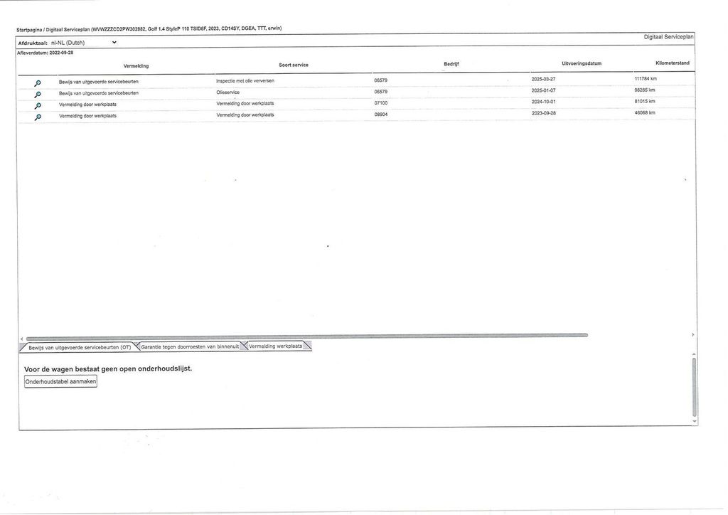 Letzte Wartung bei 111.784 km