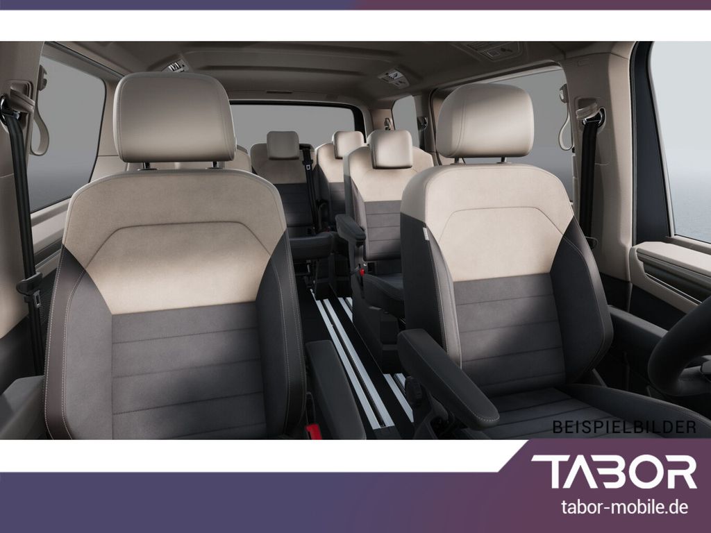 Audio-Navigationssystem Discover Pro (Touchscreen-Farbdisplay 10", inkl. Streaming & Internet), Anhängerkupplung klappbar (elektr. Entriegelung), Fahrassistenz-Paket Basic (Service-System: Intelligente Fahrzeugvernetzung (Car2X) / Fahrassistenz-System: Autom. Distanzregelung (ACC inkl. Stop&Go-Funktion) / Fahrassistenz-System: Spurwechselassistent (Side Assist) mit Auspark-Assistent und Ausstiegswarnung), Heckklappe elektr. betätigt (öffnen + schliessen), Schließ-/Startsystem Keyless Advanced mit Safesicherung, Verglasung hinten abgedunkelt (65 %), Schmutzfänger vorn und hinten, Handschuhfach abschließbar, Heckklappe mit Soft-Close-Funktion, LM-Felgen 6,5x17 (Dundrod, schwarz), Reifen 235/55 R17, Schadstoffarm nach Abgasnorm Euro 6e (EU6 EA), Mobile Online Dienste Vorbereitung We Connect und We Connect Plus (Vorbereitung Onlinedienste), Sitz-Paket: 7-Sitzer, 2-2-3 (2 Einzelsitze, 2 Einzelsitze, 3 Einzelsitze) (Sitze im Lade-/FG-Raum: 1.Reihe, 2 Einzelsitze / Sitze im Lade-/FG-Raum: 2.Reihe, 3 Einzelsitze), Außenspiegel schwarz lackiert, Blinkleuchten LED in Außenspiegel integriert, Bodenbelag im Lade-/Fahrgastraum Teppich, Chromleisten seitlich und Heckklappe unten, Digital Cockpit Pro (Instrumentenanzeige Digital), Fahrassistenz-System: Ausweich-Assistent und Abbiege-Assistent, Fenster im Lade-/FG-Raum: - feststehend, vorn links, Fenster im Lade-/FG-Raum: - feststehend, vorn rechts, Frontscheibe Verbundglas getönt, F
