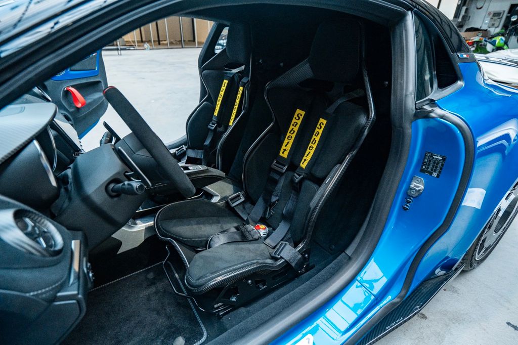 As for equipment, this Alpine comes with Sabelt bucket seats with 6-point harnesses, Focal audio system, electrically adjustable and heated mirrors, storage pack, air conditioning, cruise control, floor mats, front trunk, as well as a reversing camera.